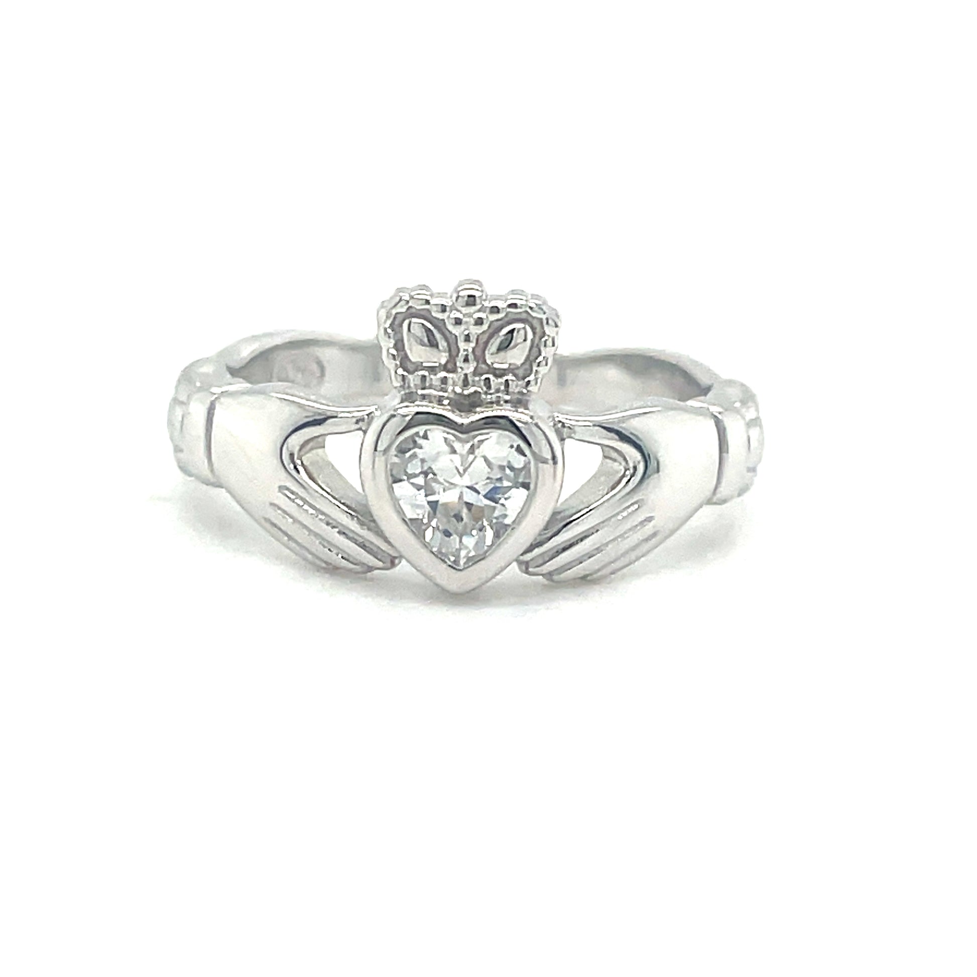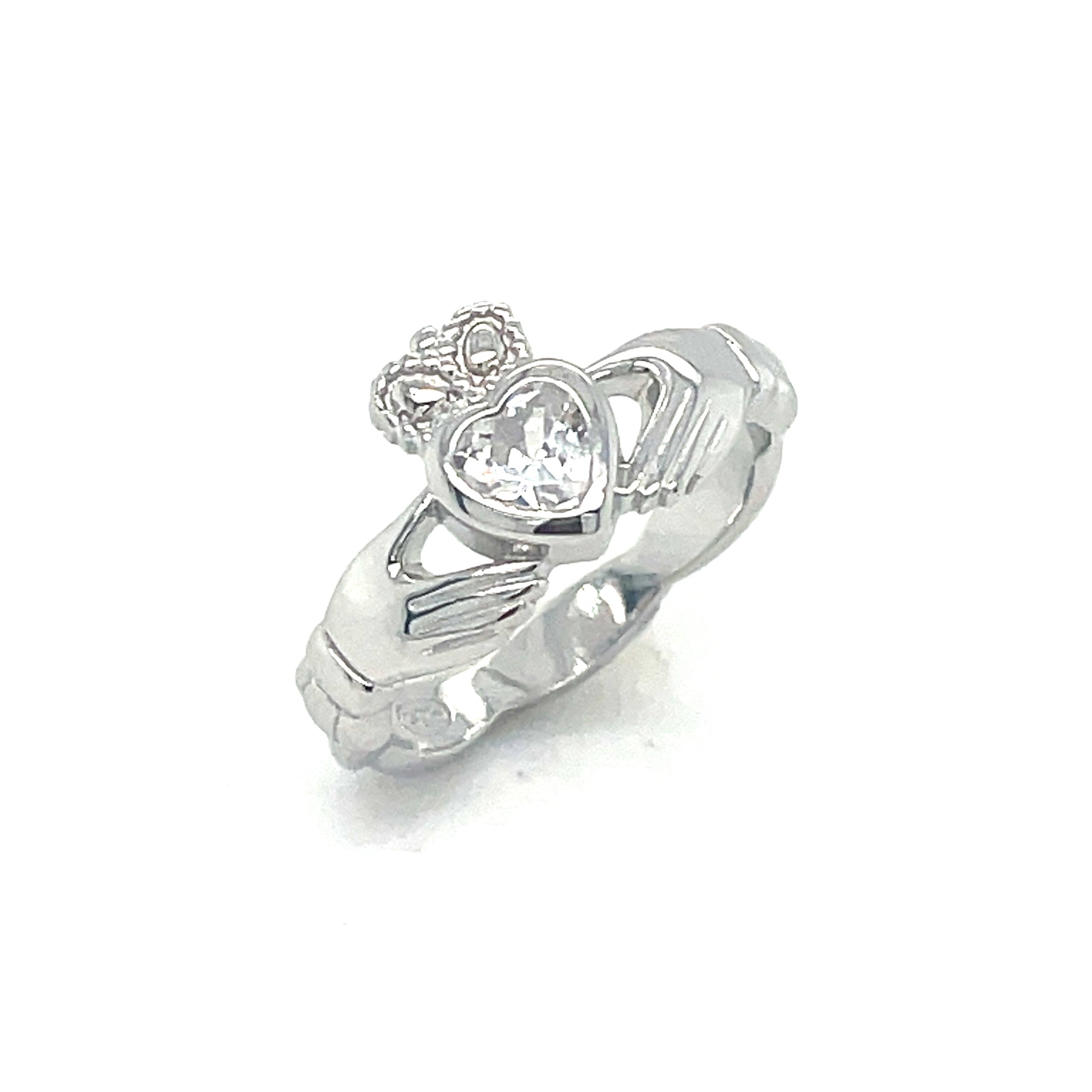 Sterling Silver Cubic Zirconia Rubover Claddagh Woven Ring
