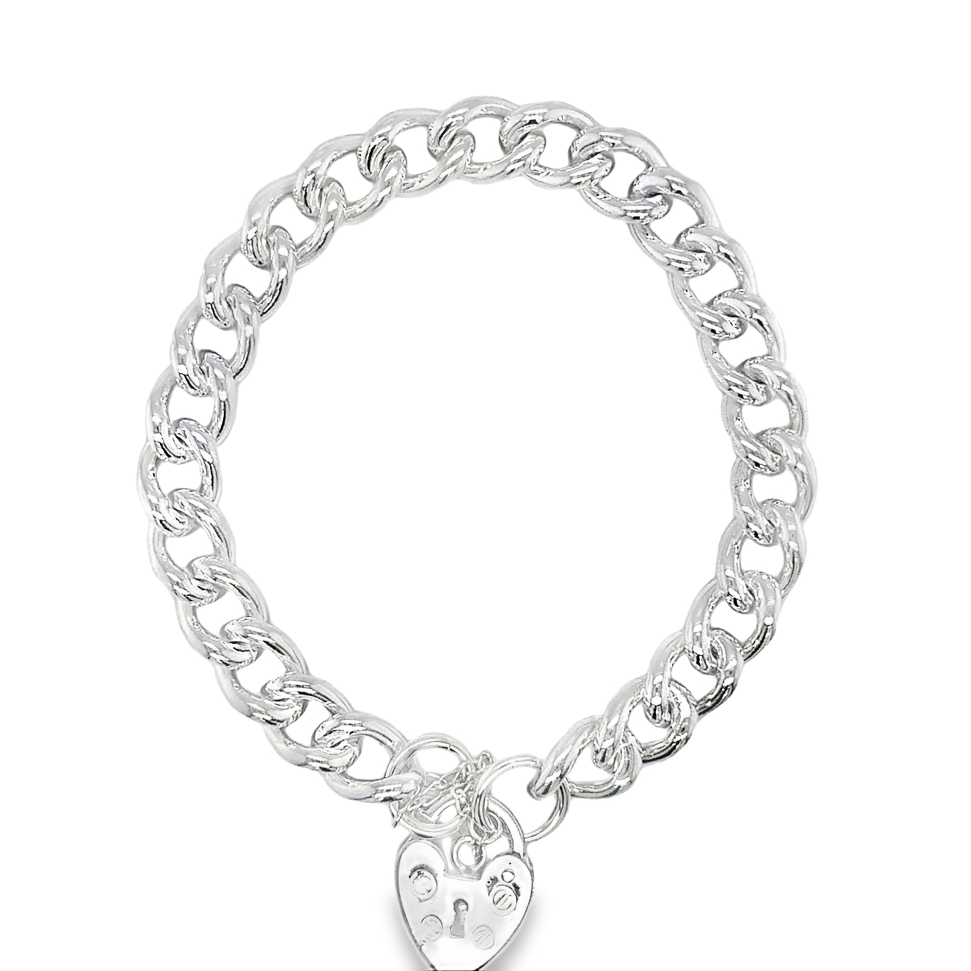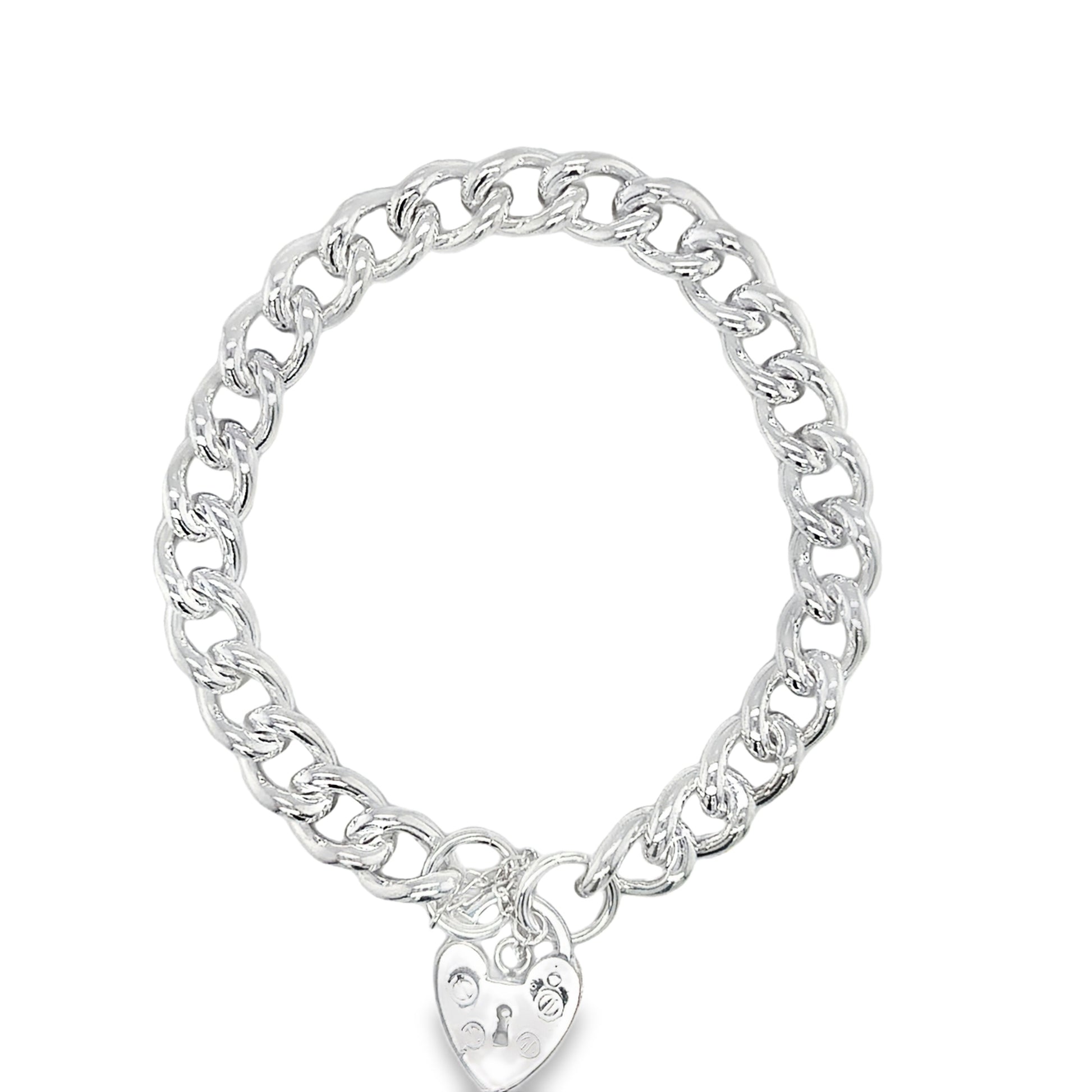 Sterling Silver Curb Bracelet with Heart Padlock