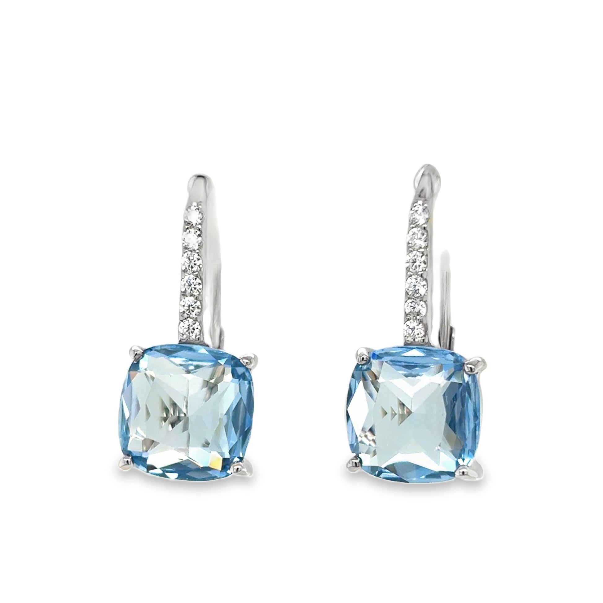 Sterling Silver Cushion Cut Blue CZ Huggy Drop Earrings