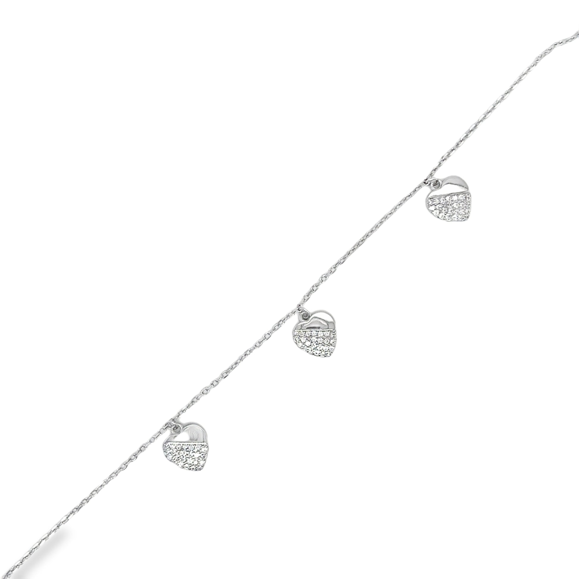 Sterling Silver CZ and Polished Heart Scatter Bracelet
