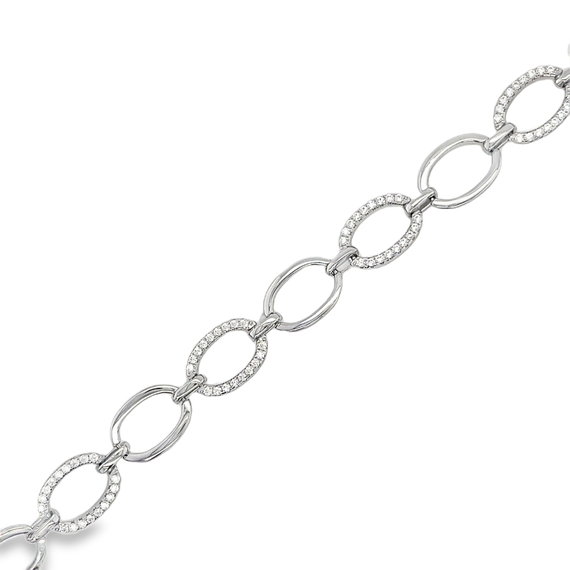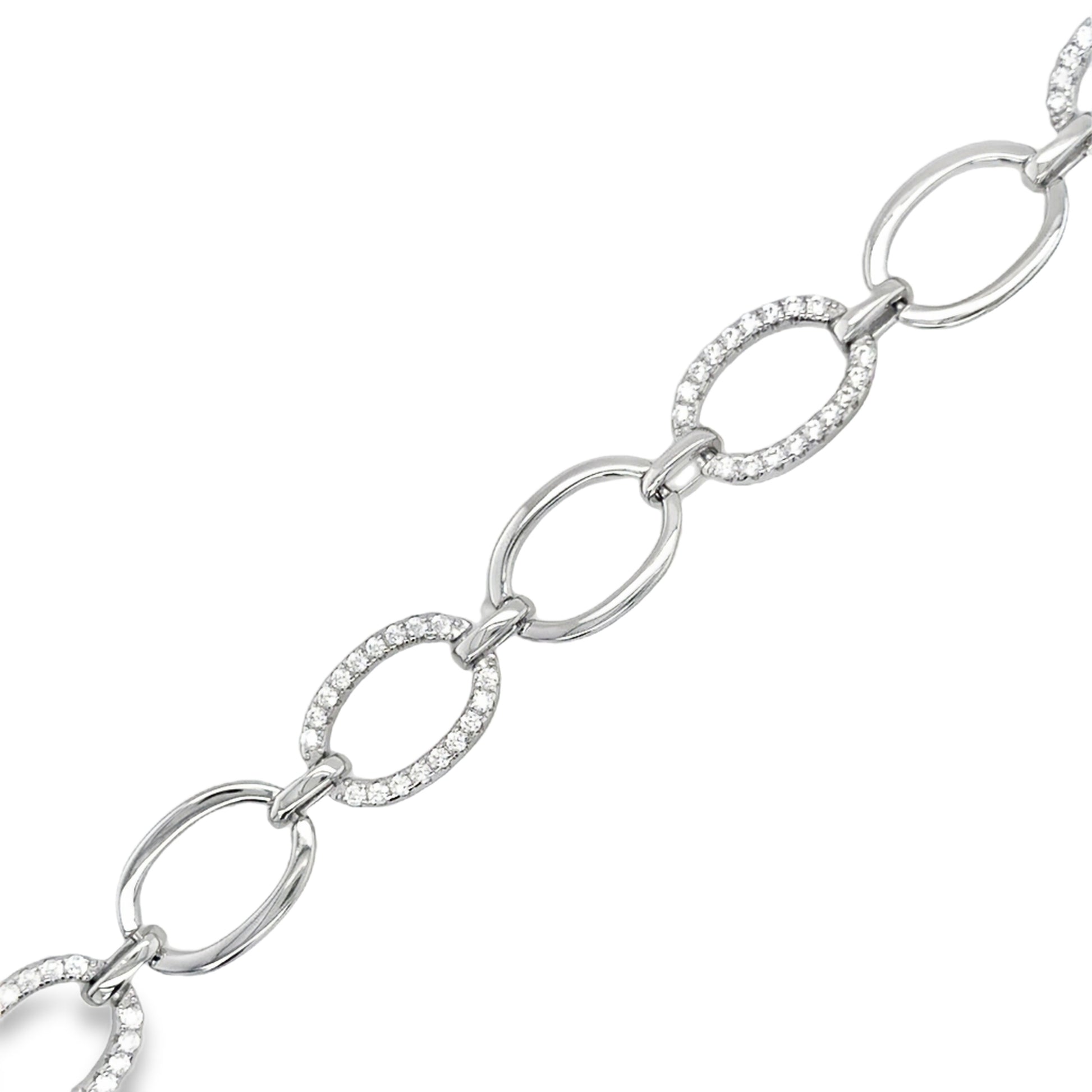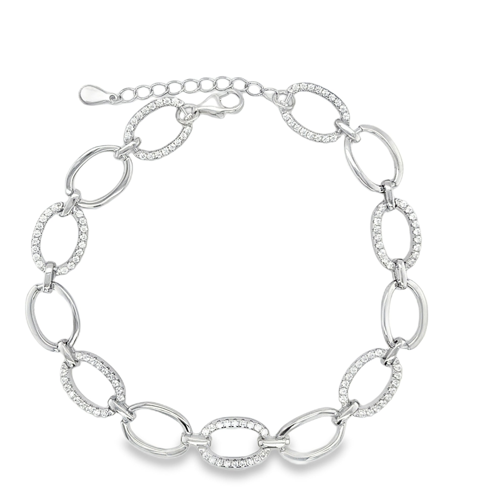 Sterling Silver CZ And Polished Open Oval Link Bracelet