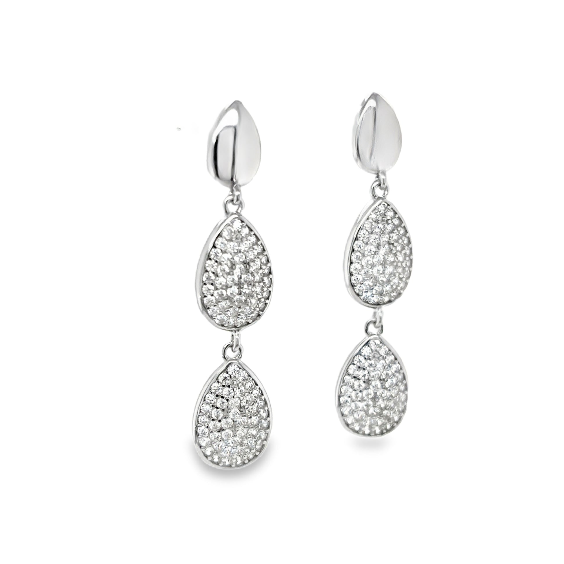 sterling Silver CZ and Polished Triple Pear Drop Earrings
