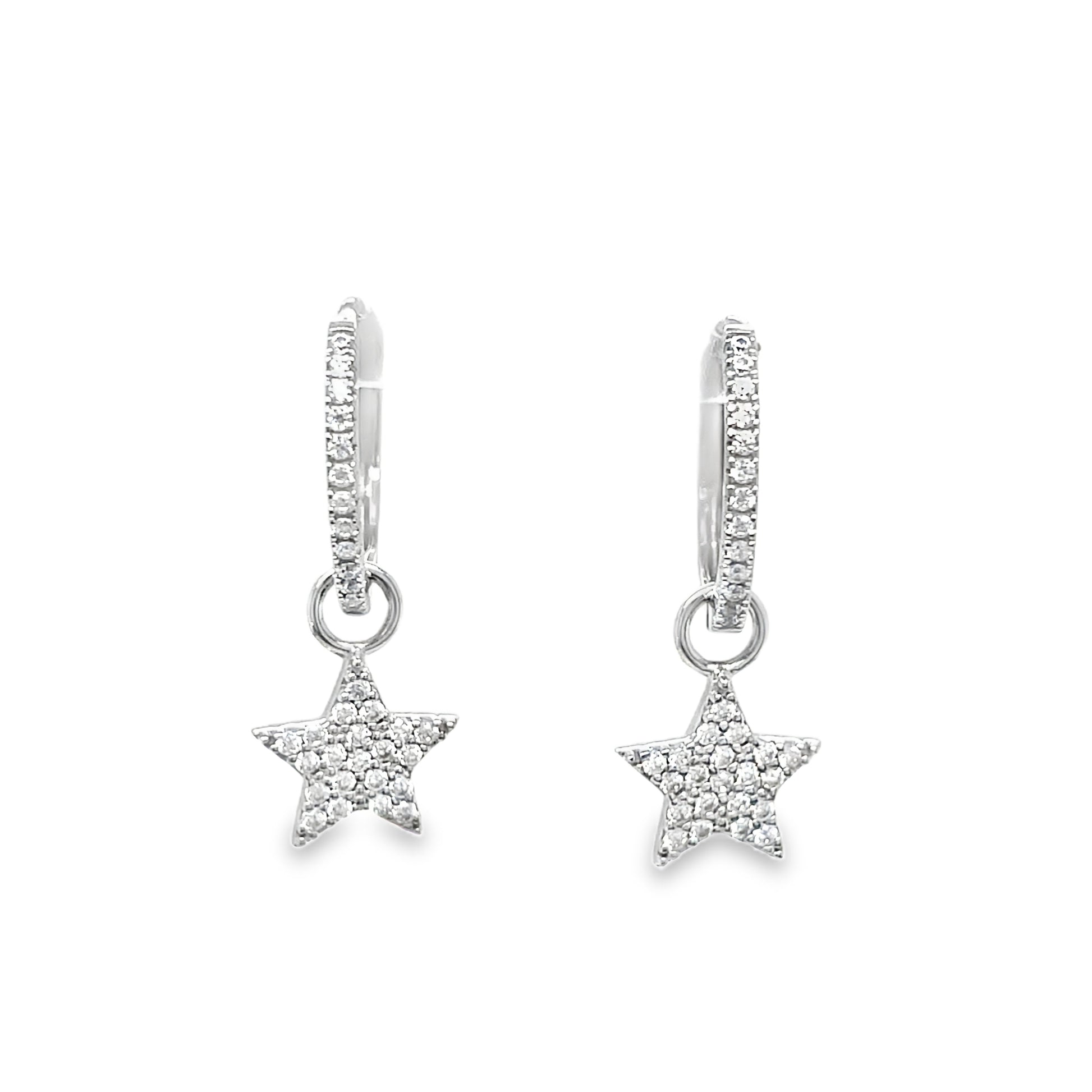 Sterling Silver CZ Huggy Star Drop Earrings