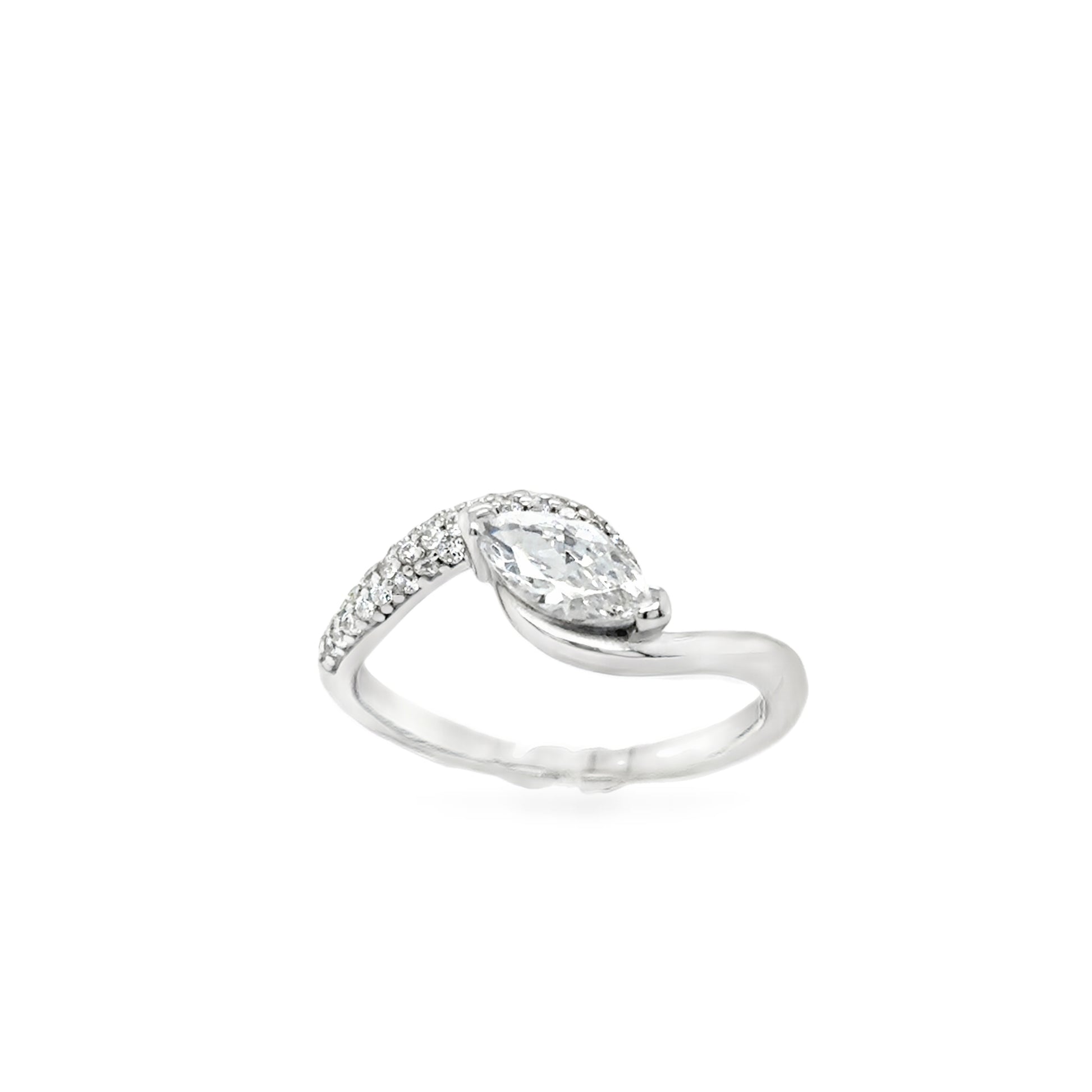 Sterling Silver CZ Marquise Twist Ring With CZ Shoulder