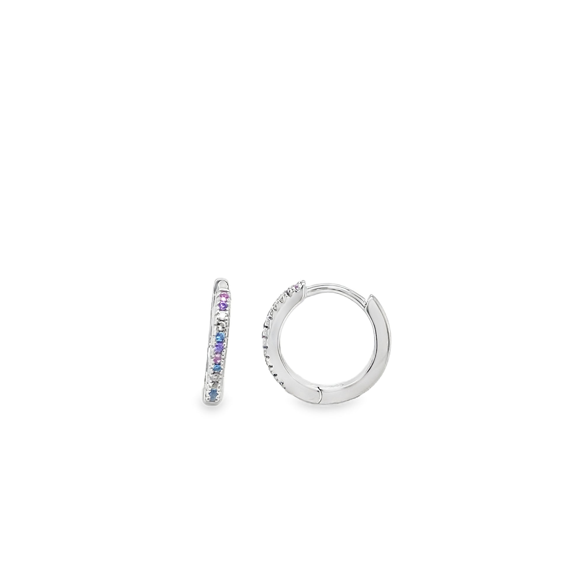 Sterling Silver CZ Multicoloured 12mm Hoop Earrings