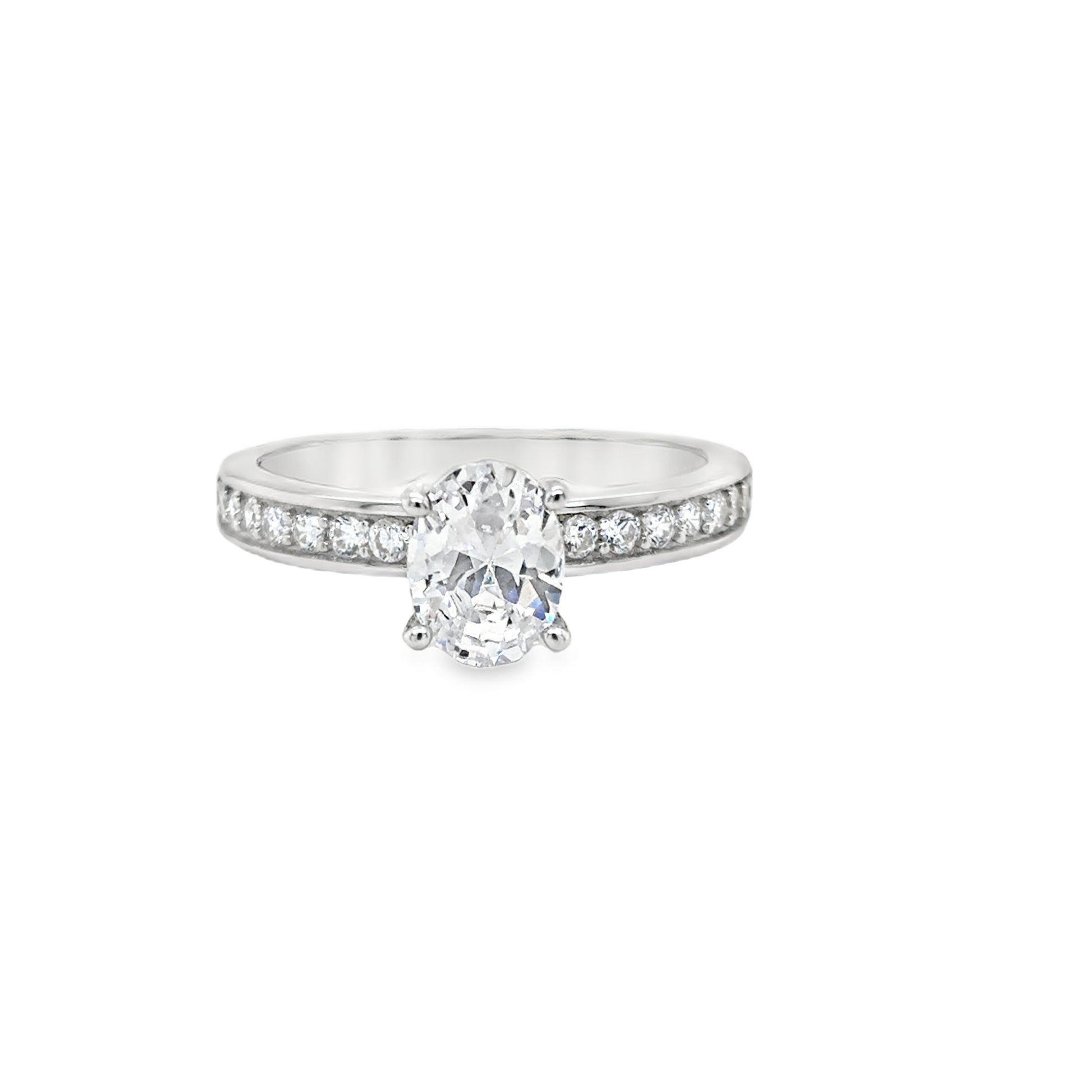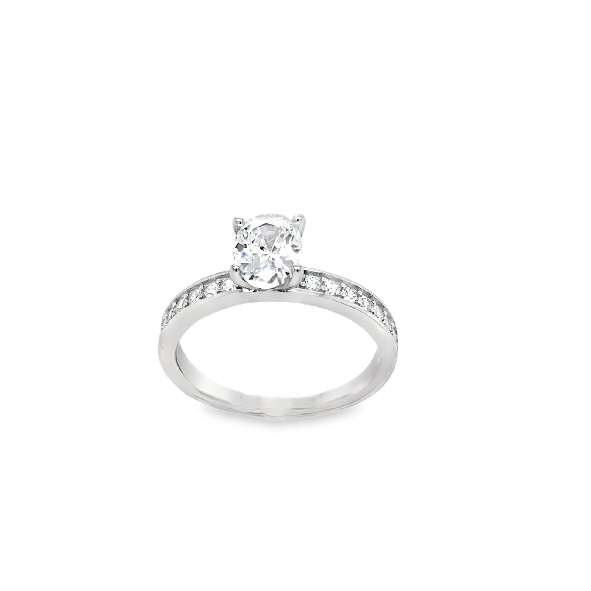 Sterling Silver CZ Oval Ring With Stone Set Shoulders