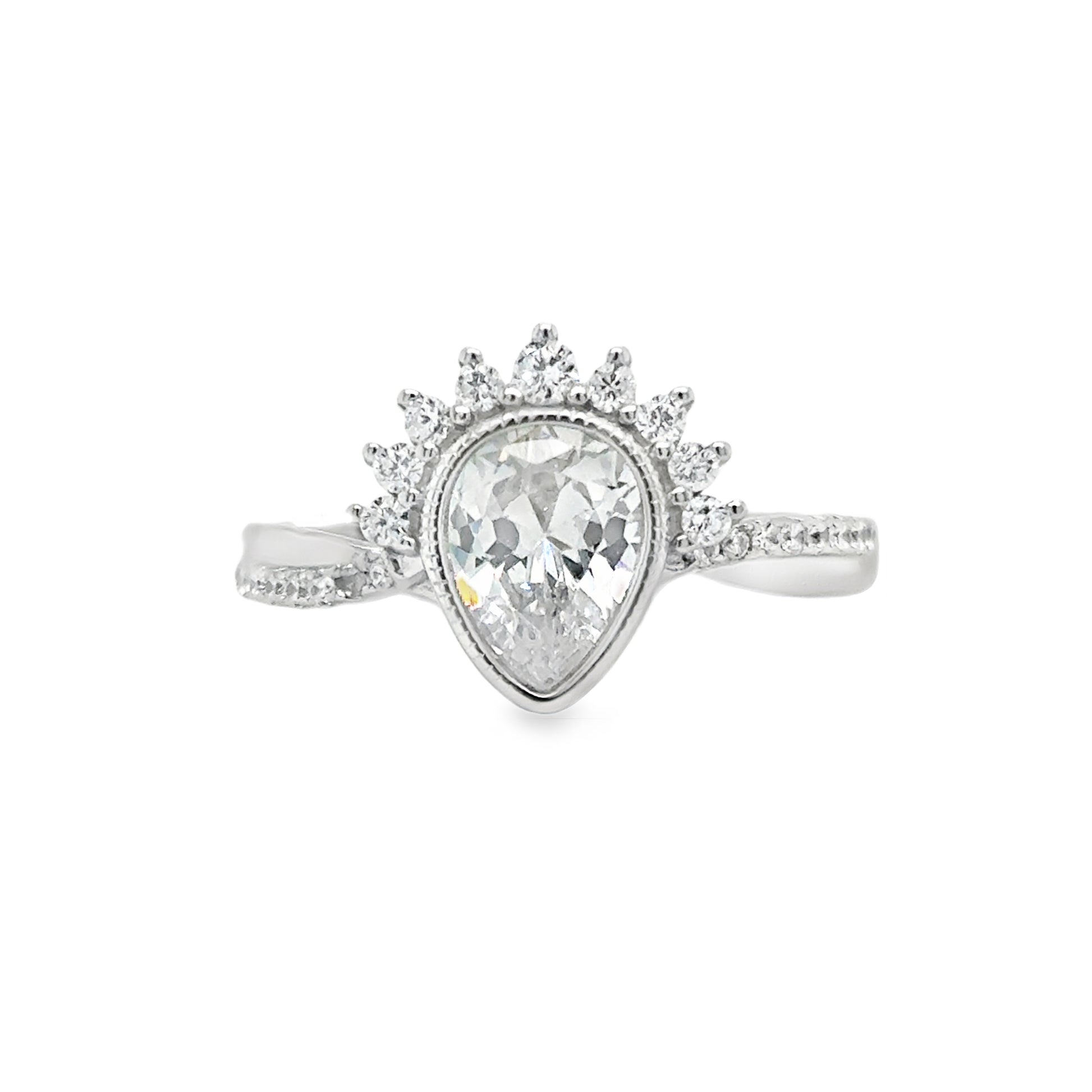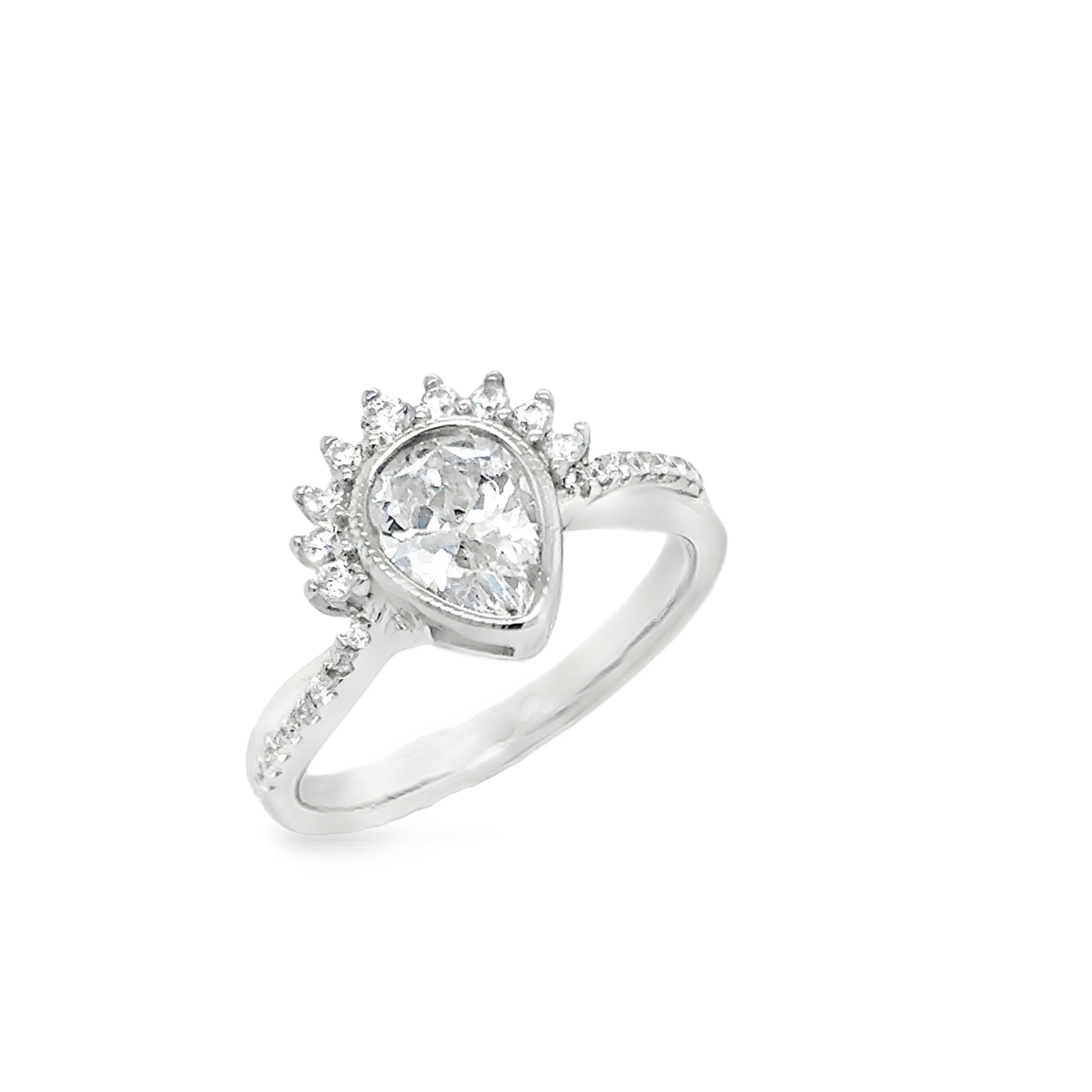 Sterling Silver CZ PearHalf Halo Ring With Shoulders