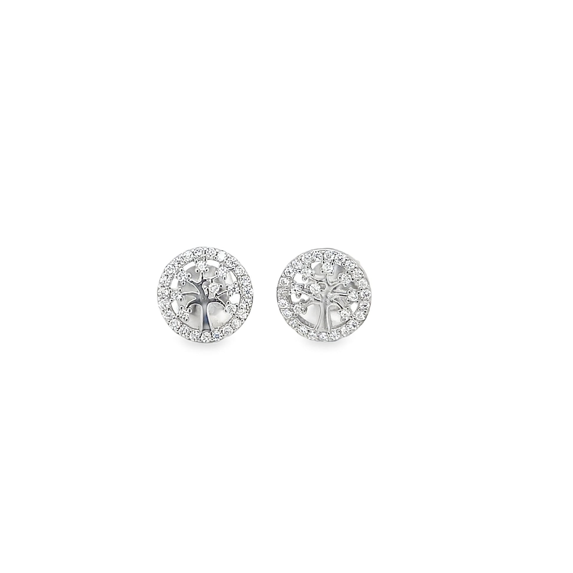 Sterling Silver CZ Tree Of Life Earrings