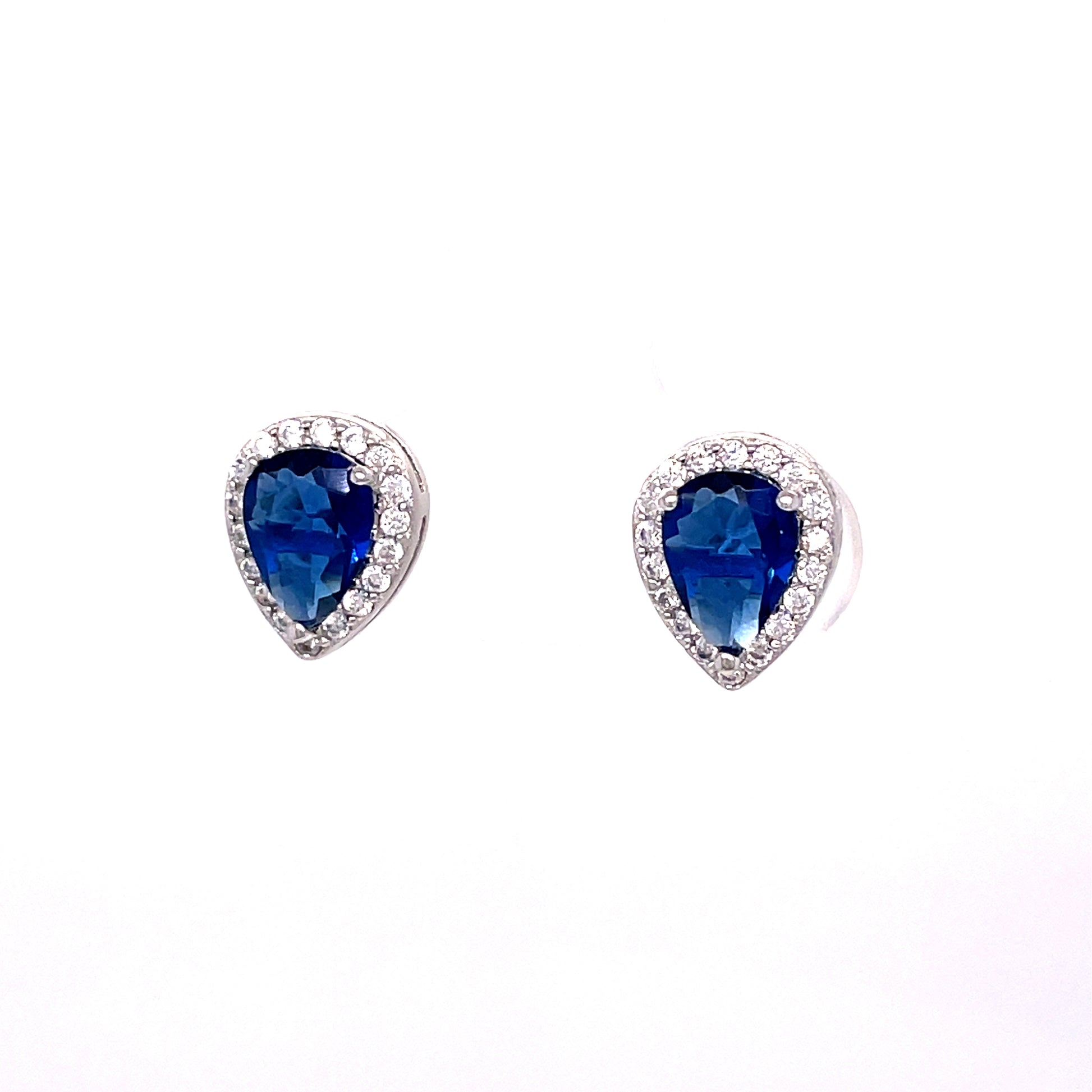 Sterling Silver Dark Blue + White Cubic Zirconia Teardrop Cluster Earrings