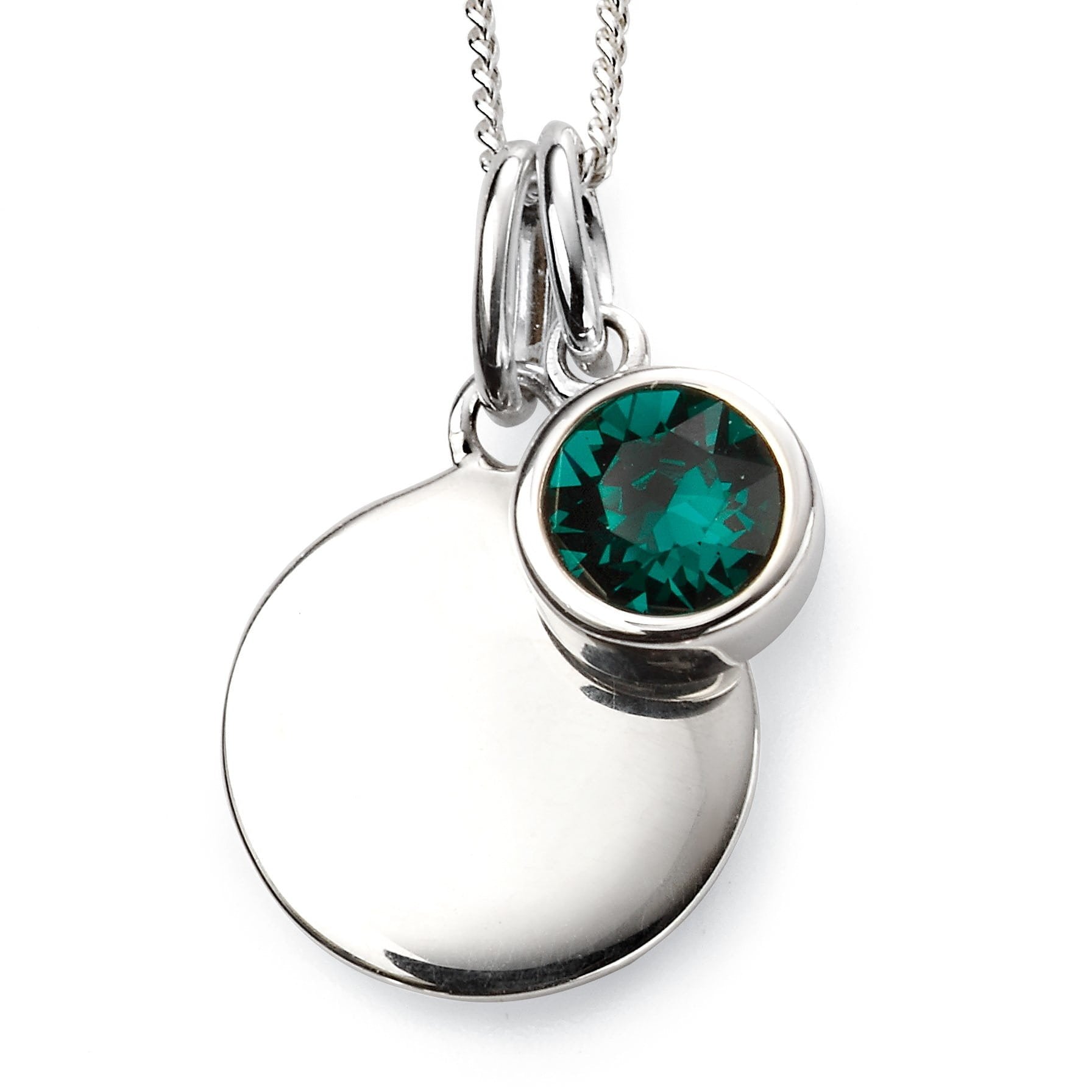 Sterling Silver Disc May Green Stone Birthstone Charm Pendant