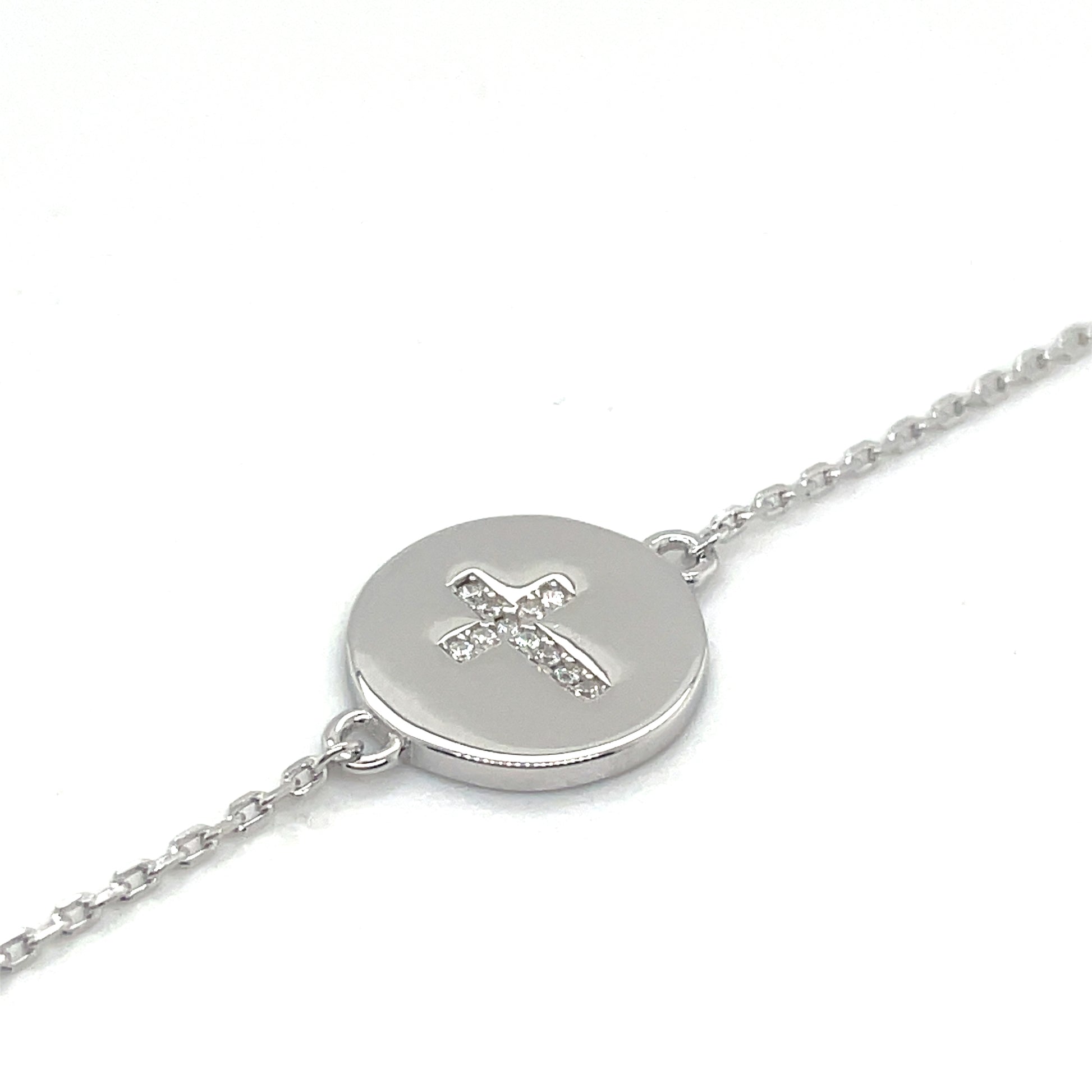 Sterling Silver Disc With Cubic Zirconia Cross Bracelet