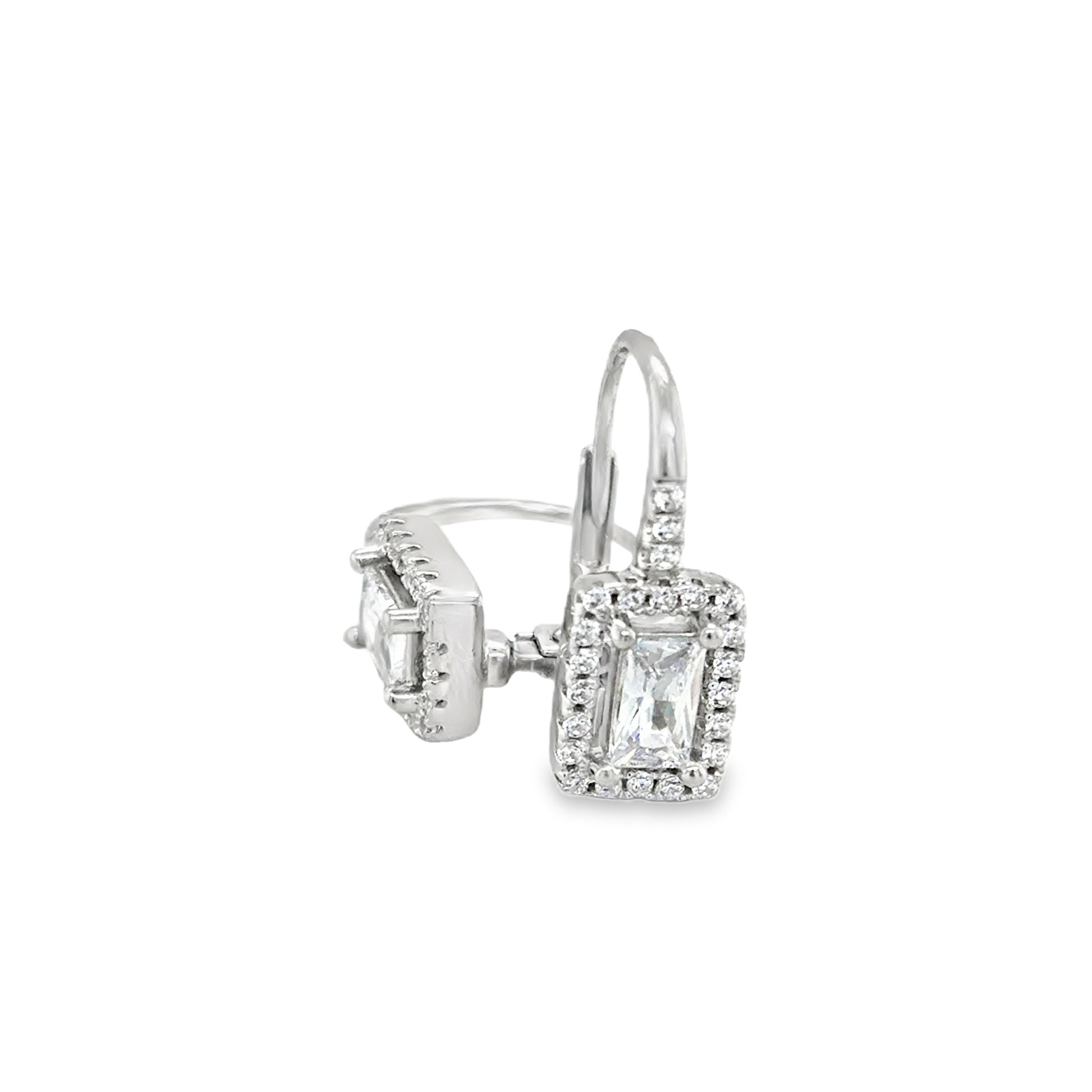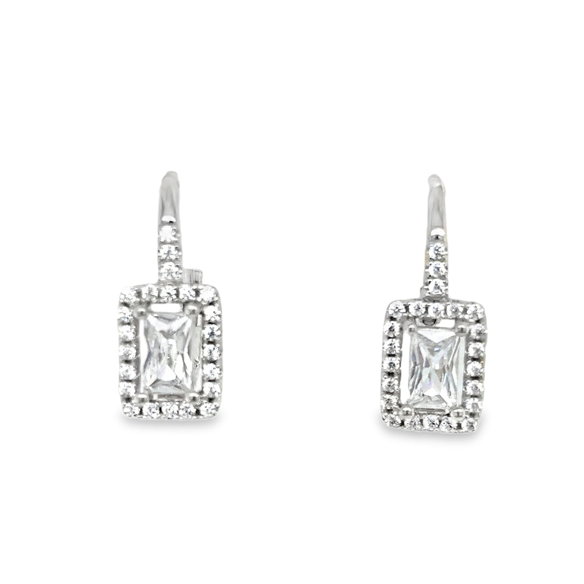 Sterling Silver Emerald Cut CZ Cluster Drop Earrings