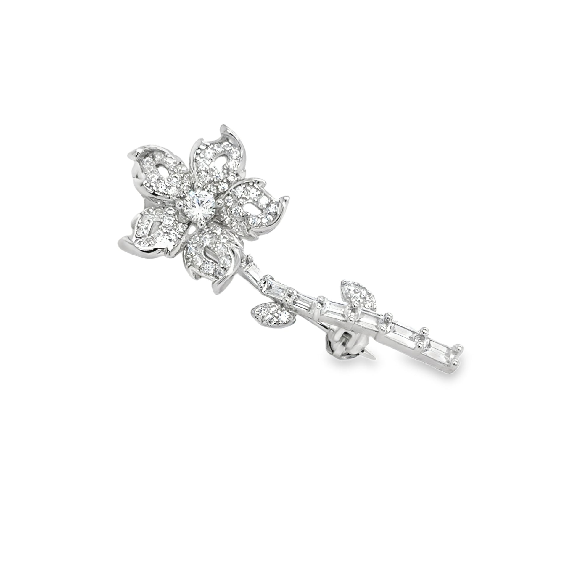 Sterling Silver Fancy CZ Flower Brooch