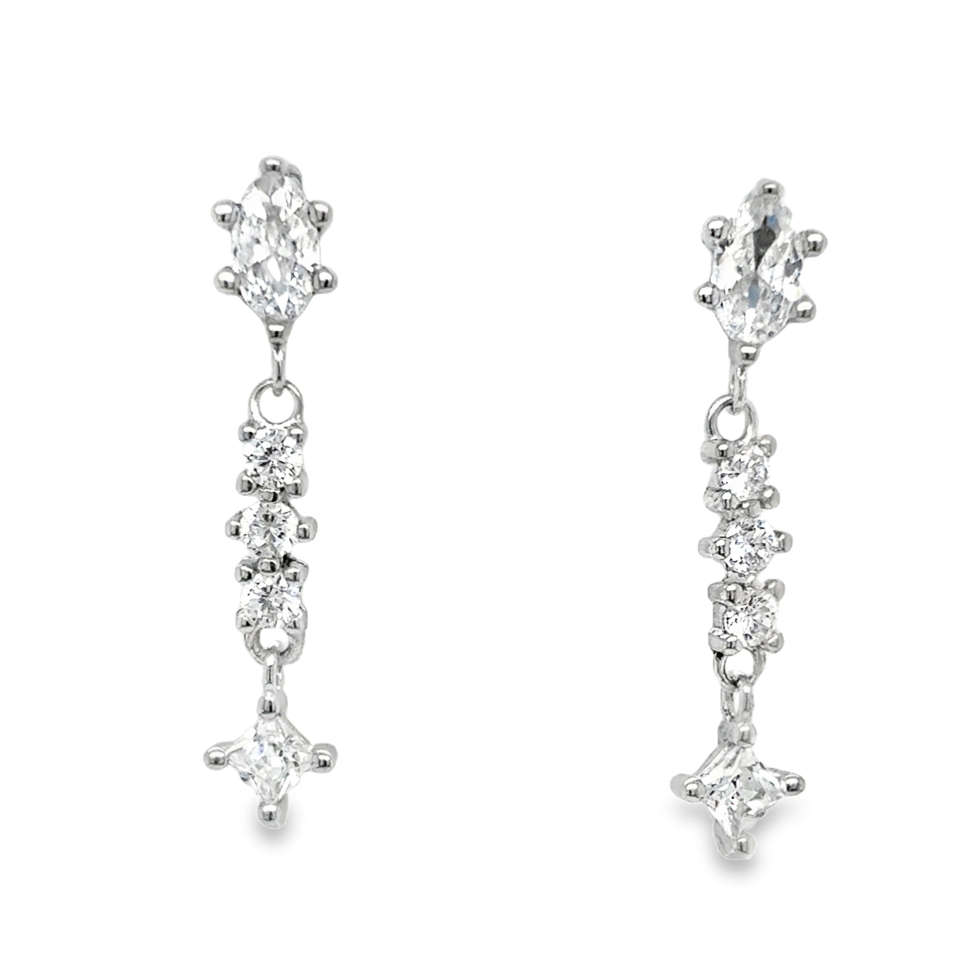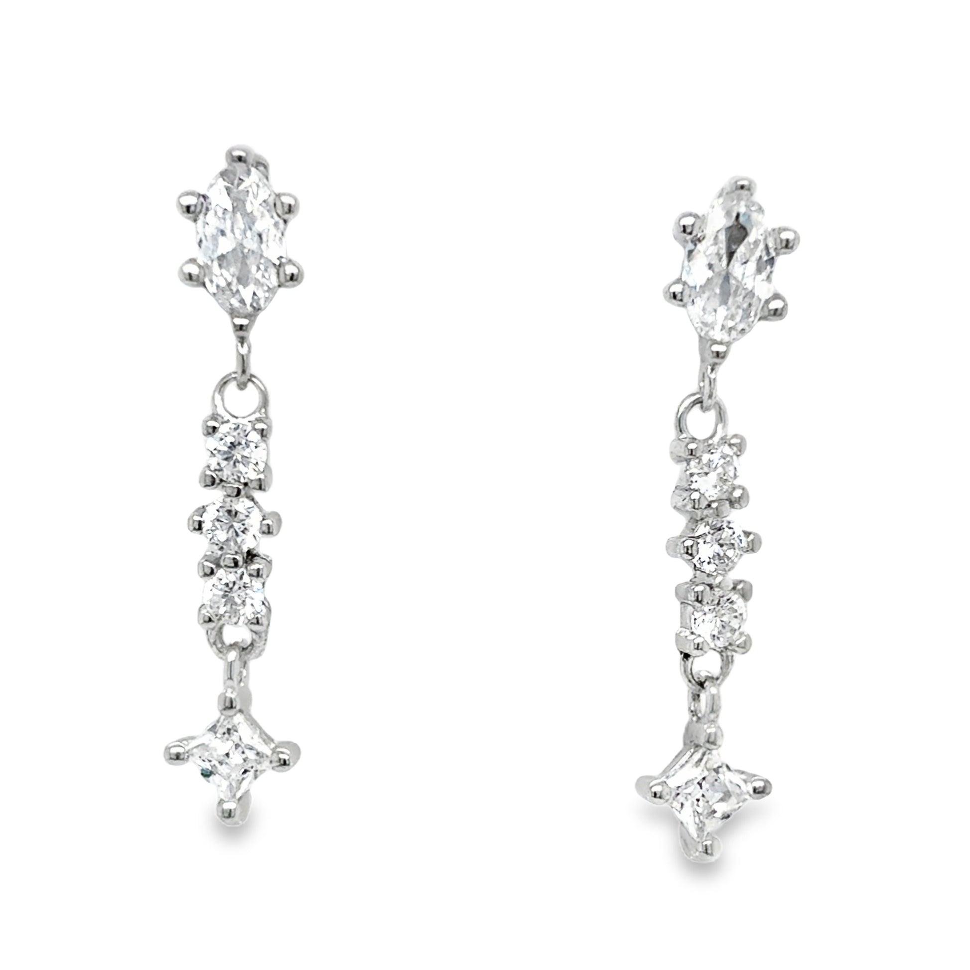 Sterling Silver Fancy Marquis and Princess Cut Fancy Drop Earrings