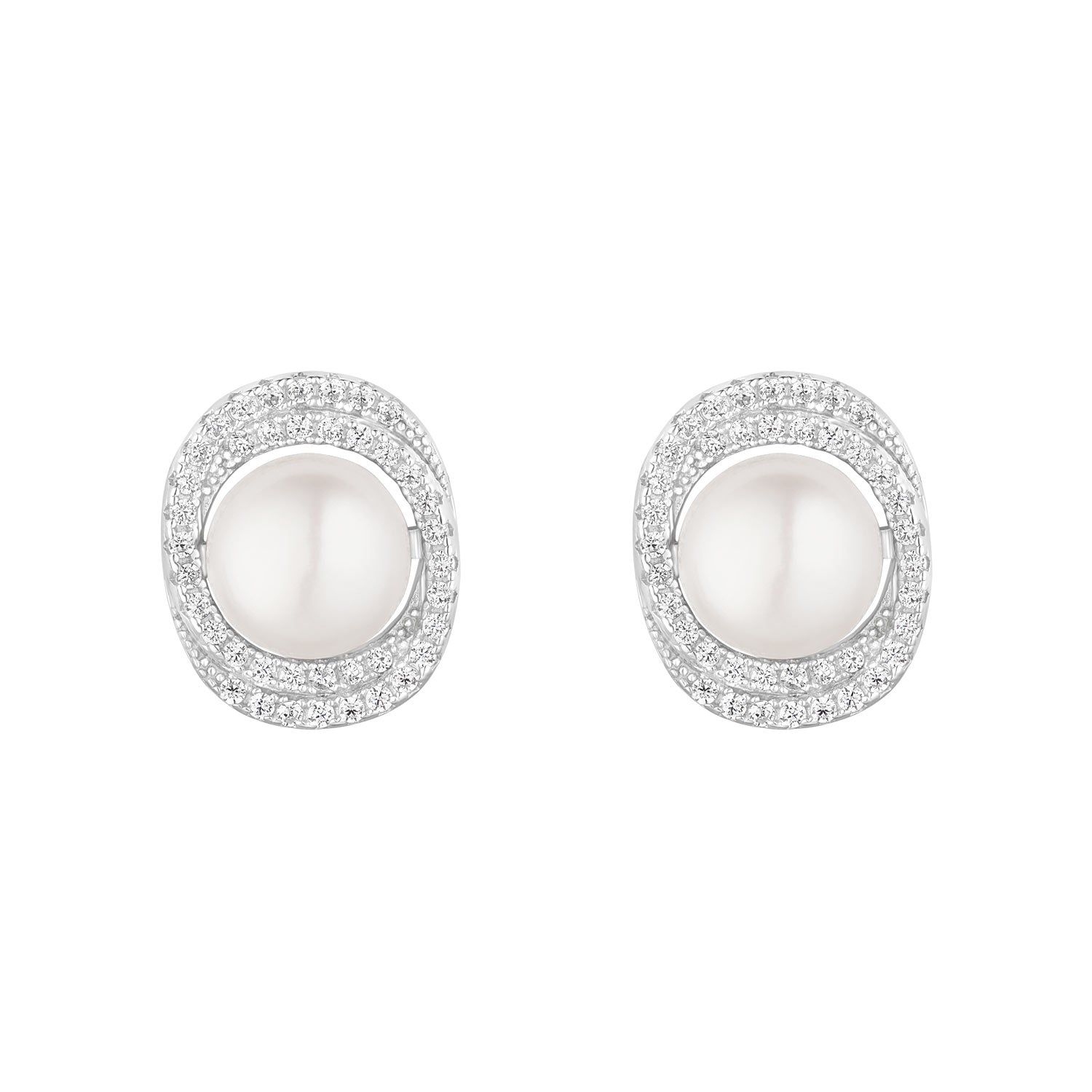 Sterling Silver Freshwater Pearl CZ Double Halo Earrings