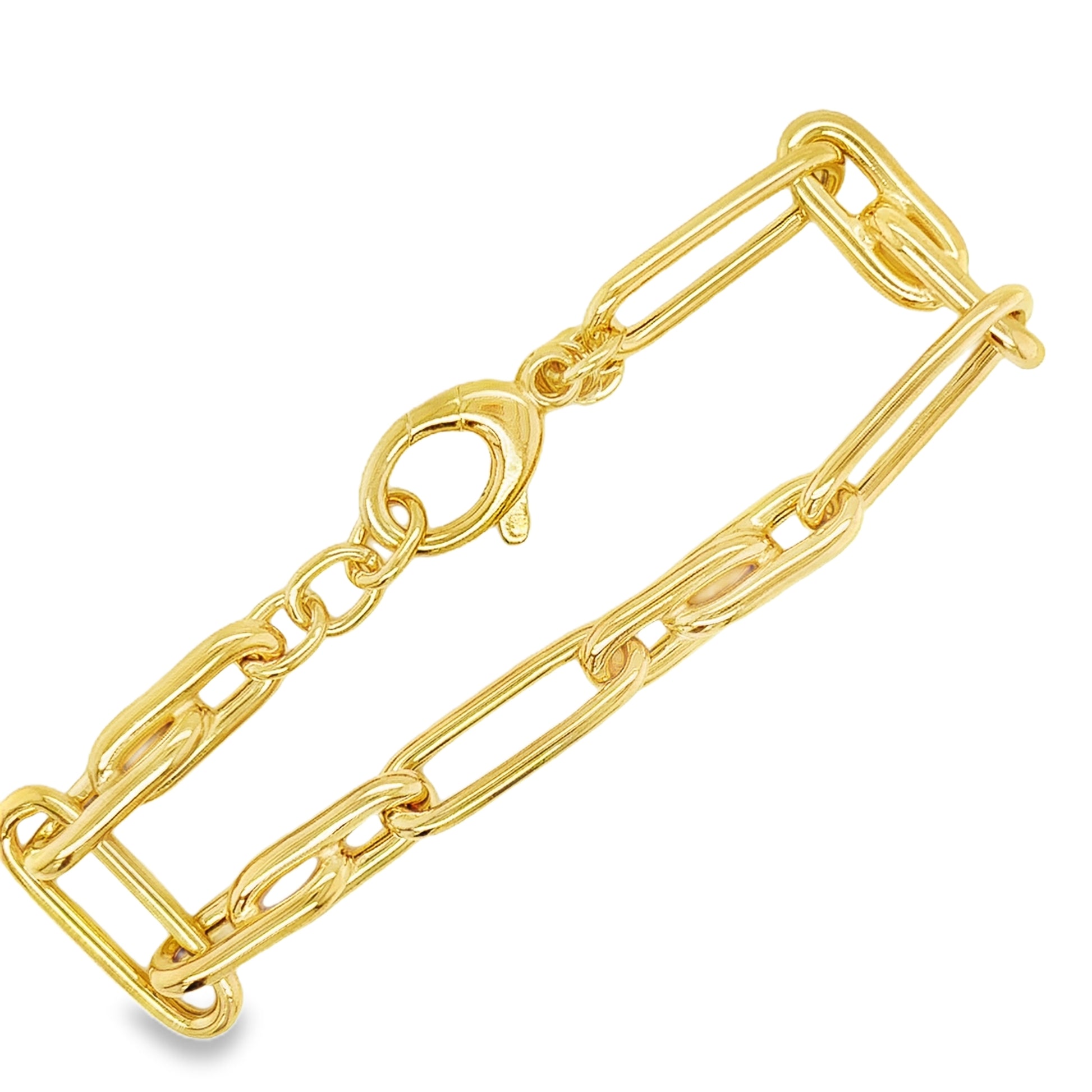 Sterling Silver Gold Plated Long Oval Link Bracelet