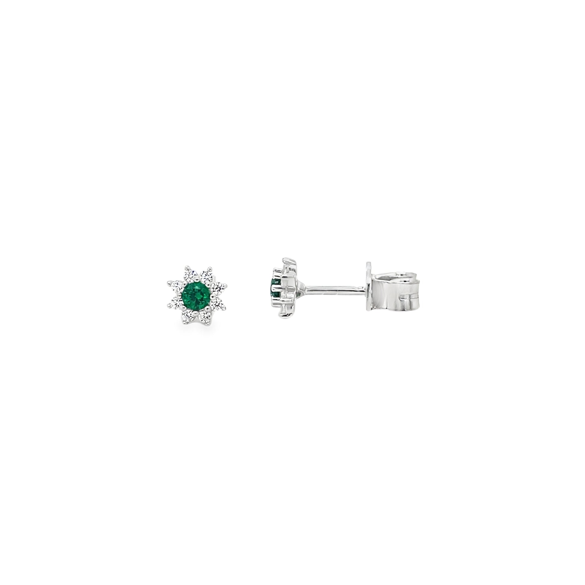 Sterling Silver Green & CZ Flower Cluster Earrings