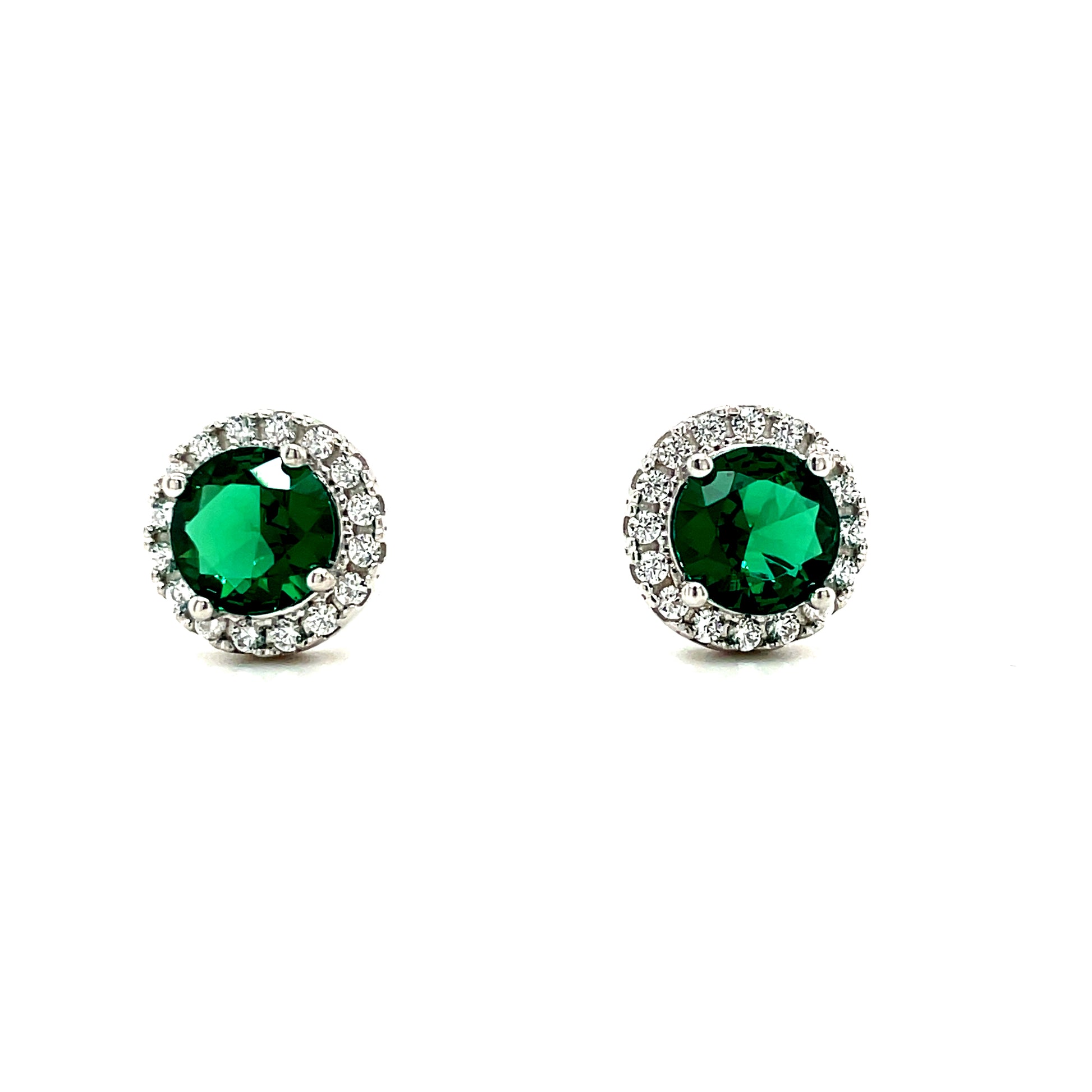 Sterling Silver 6mm Green CZ Halo Stud Earring