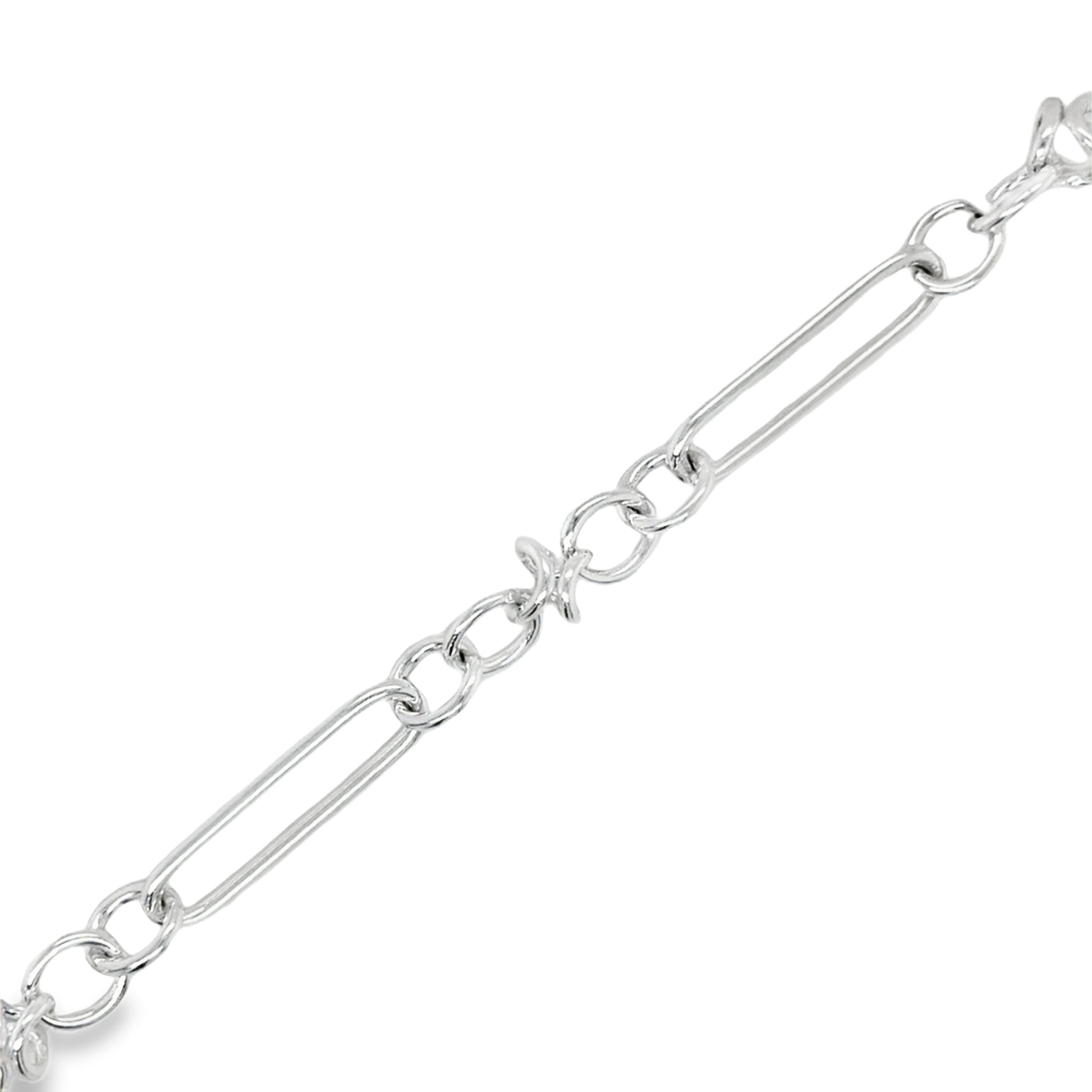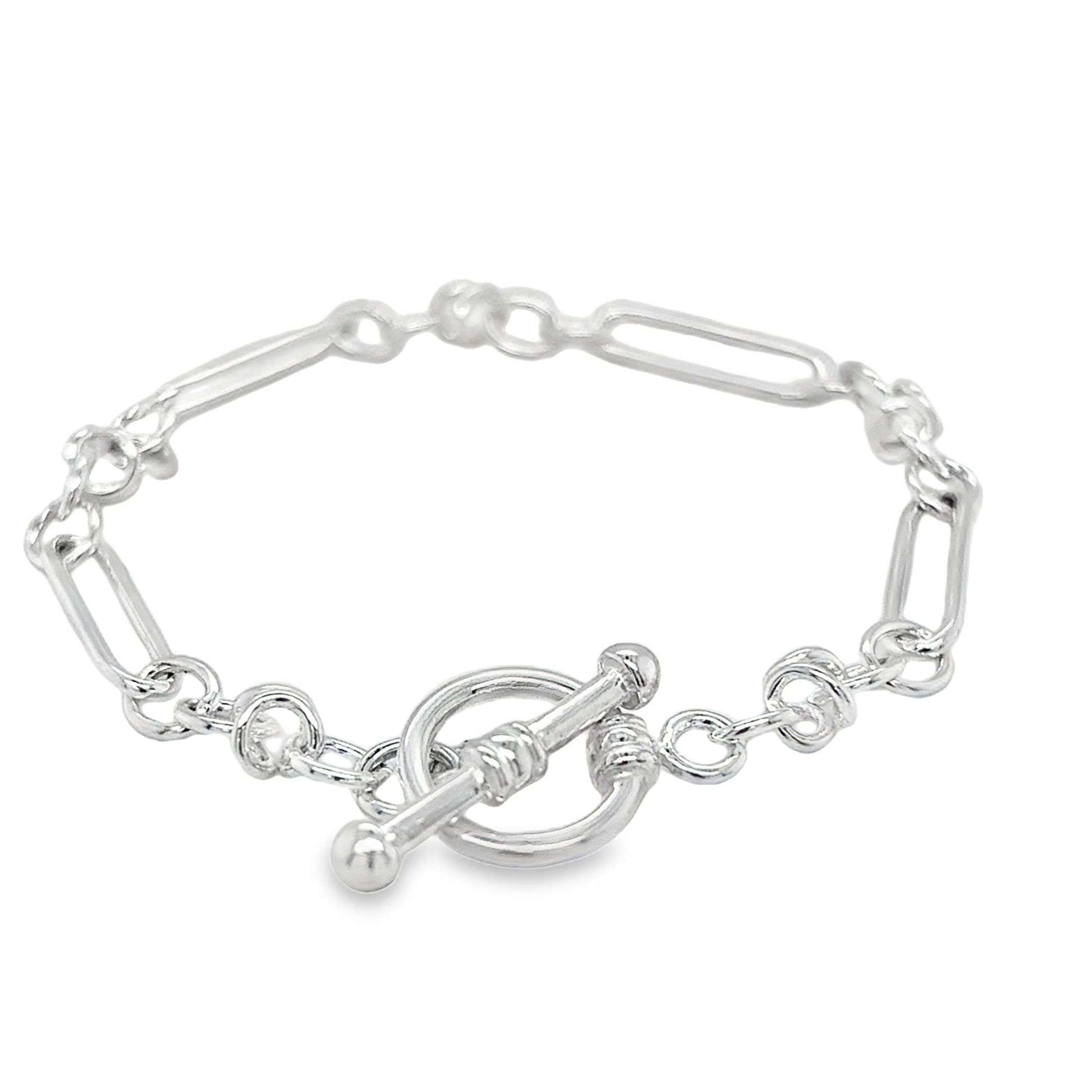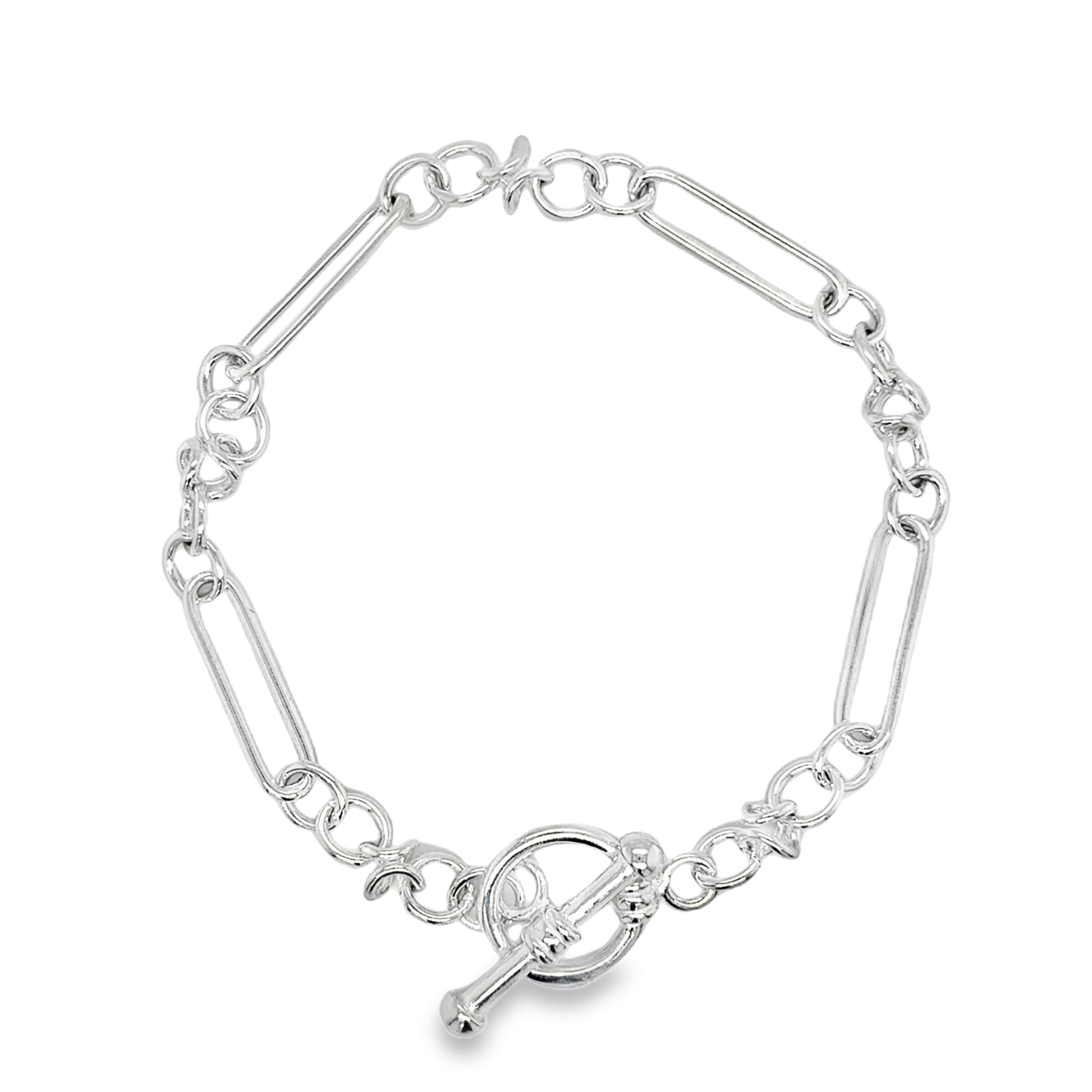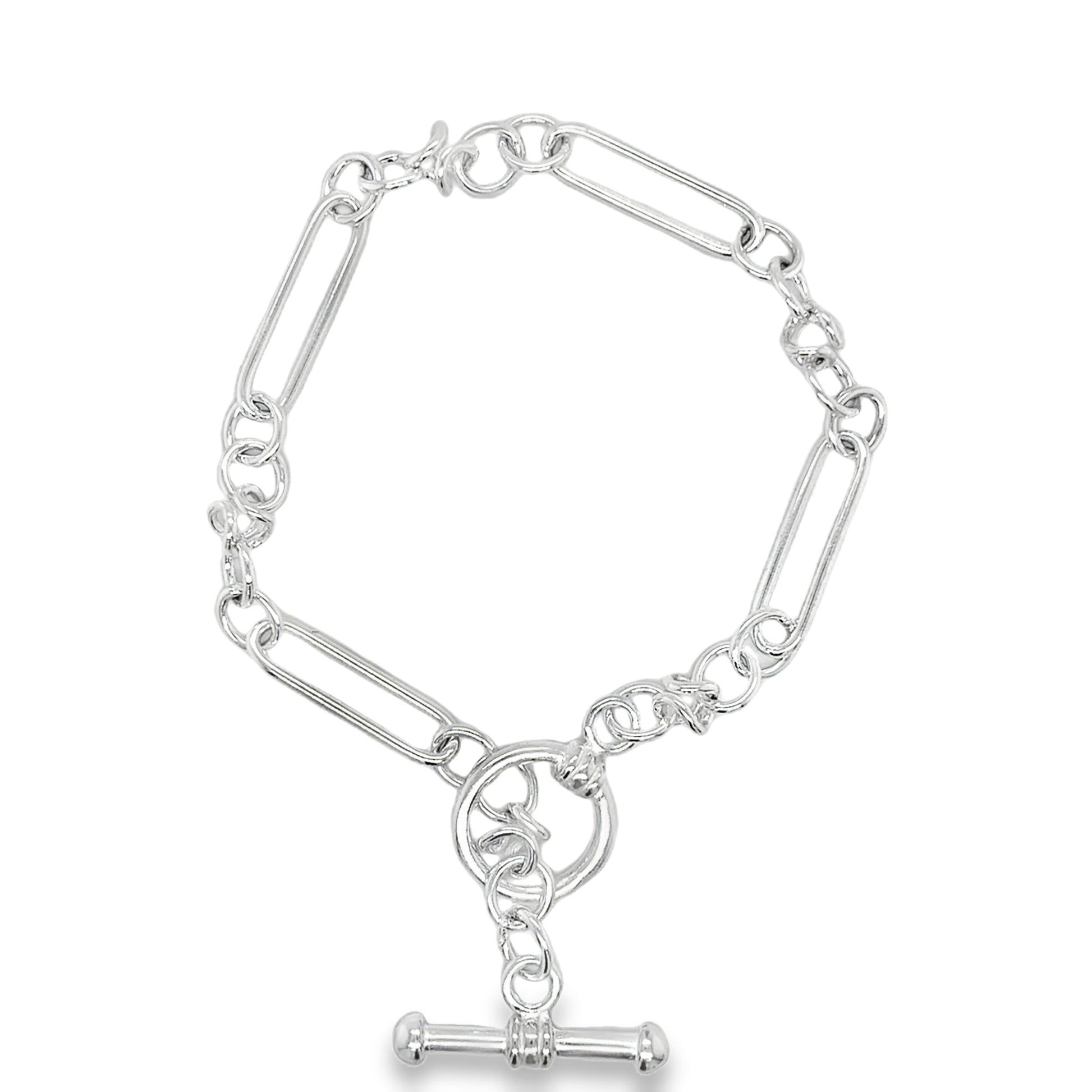 Sterling Silver Long Oval Link Bracelet with T-Bar 7.5"