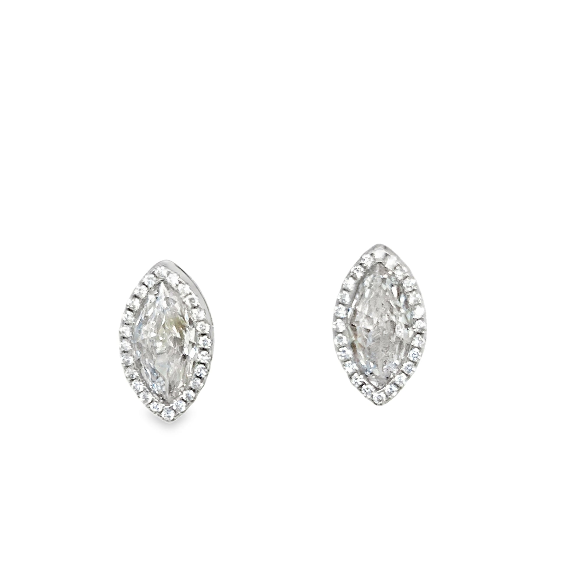 Sterling Silver Marquis Cut CZ Halo Stud Earrings