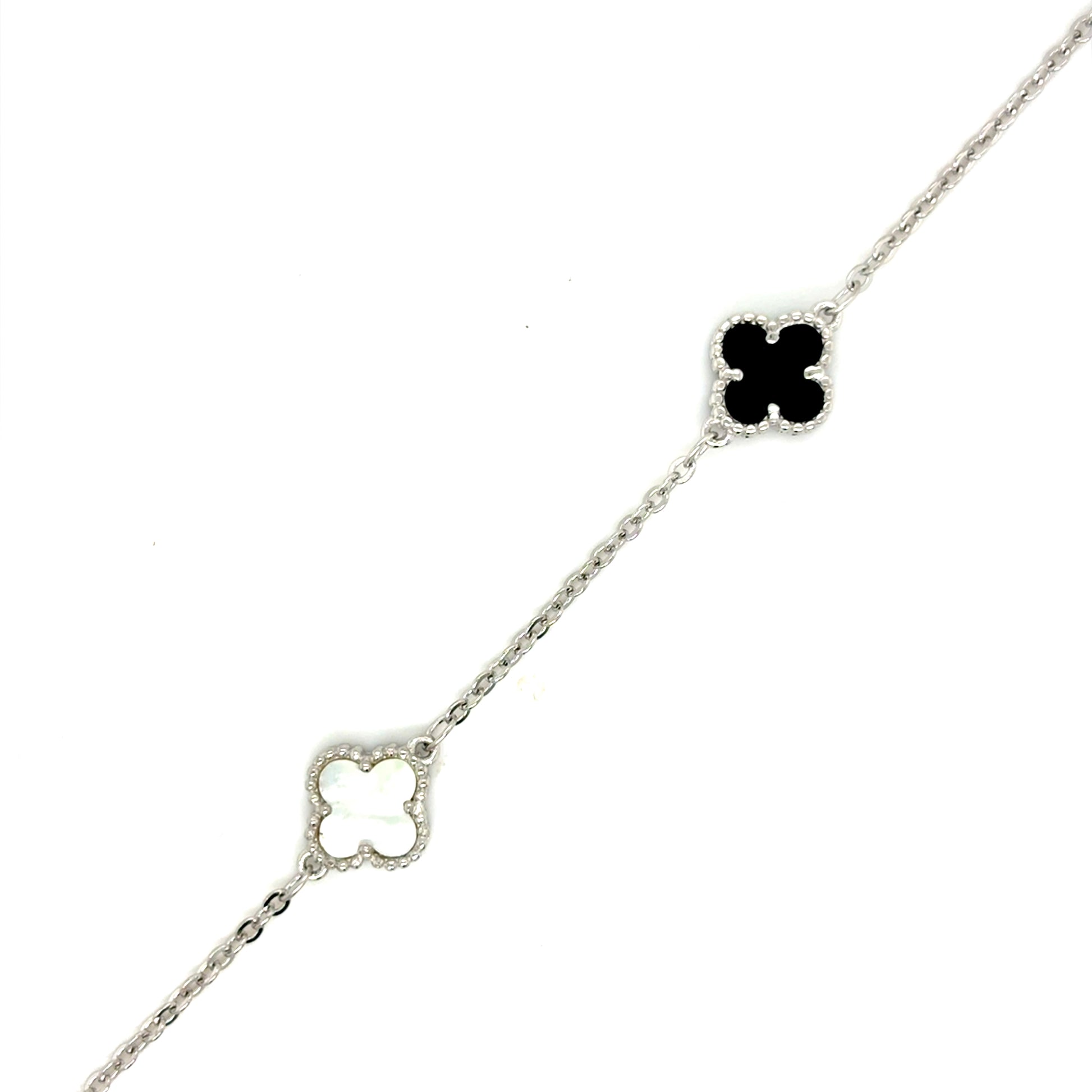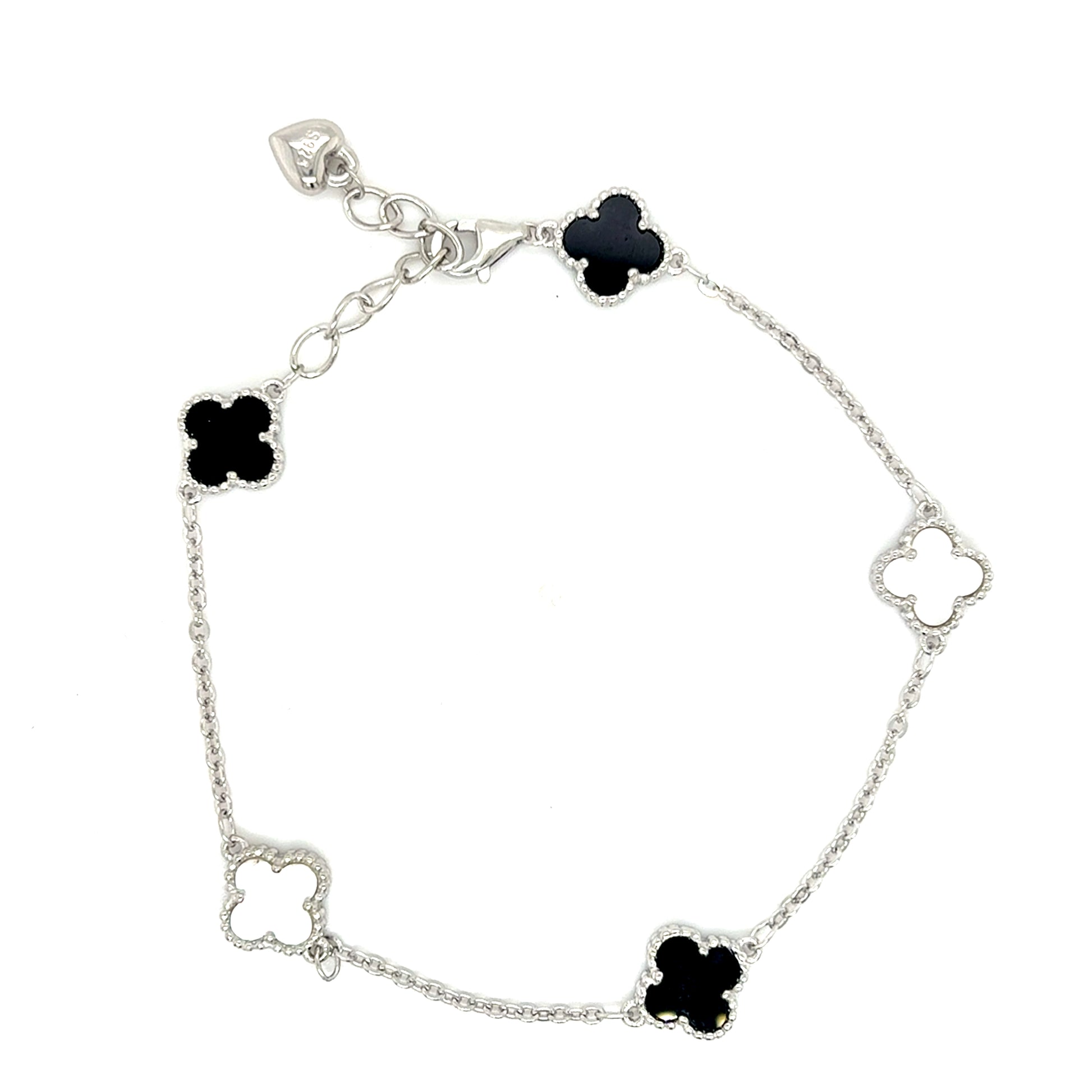 Sterling Silver Mother of Pearl and Black Clover Scatter Bracelet