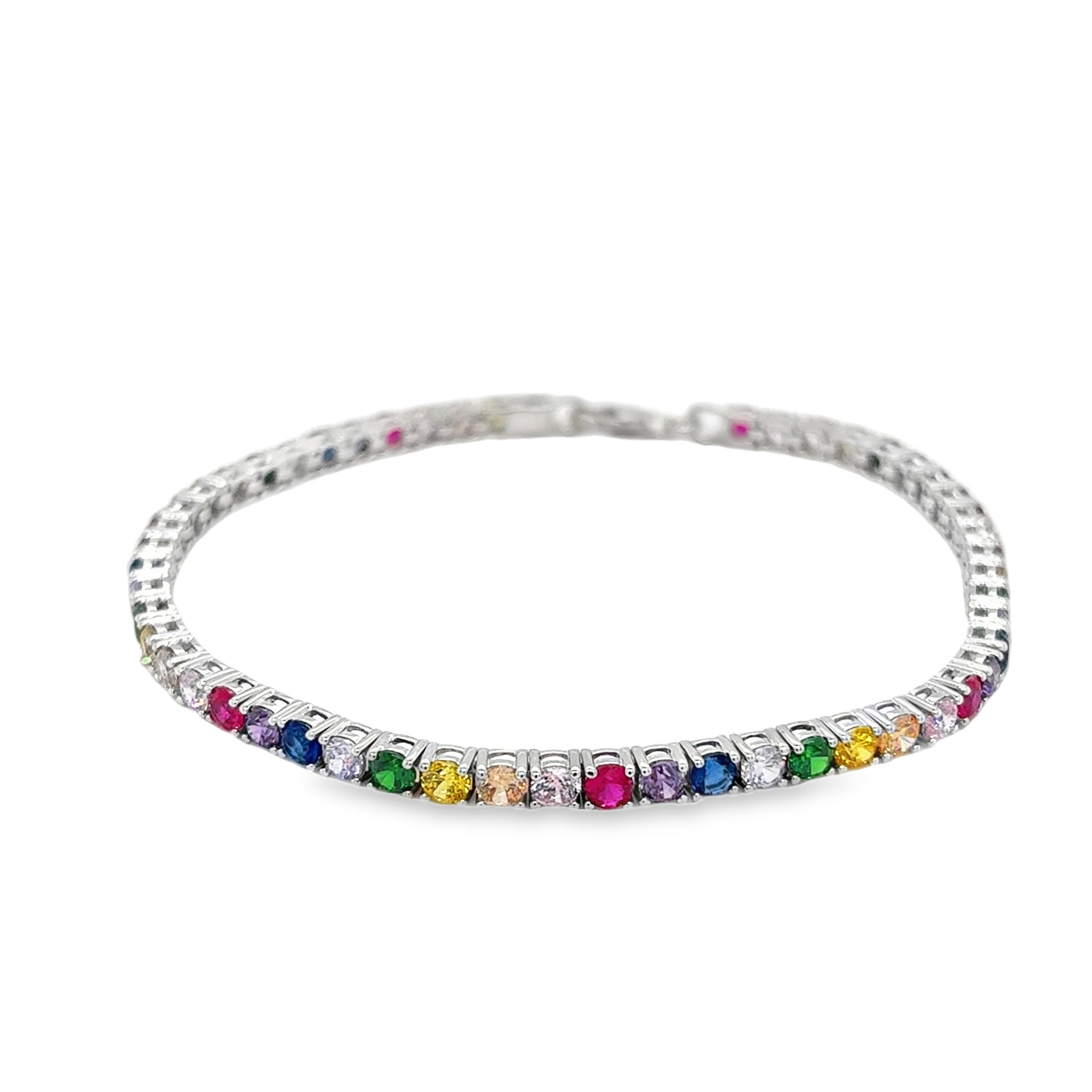 Sterling Silver Multi Colour CZ Tennis Bracelet