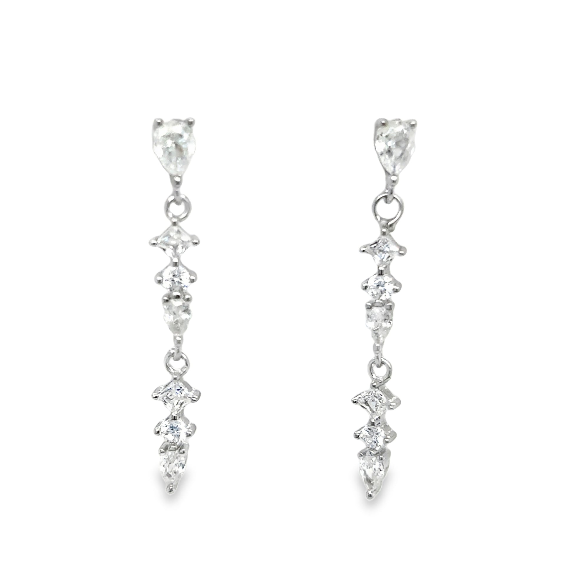 Sterling Silver Multi CZ Drop Earrings