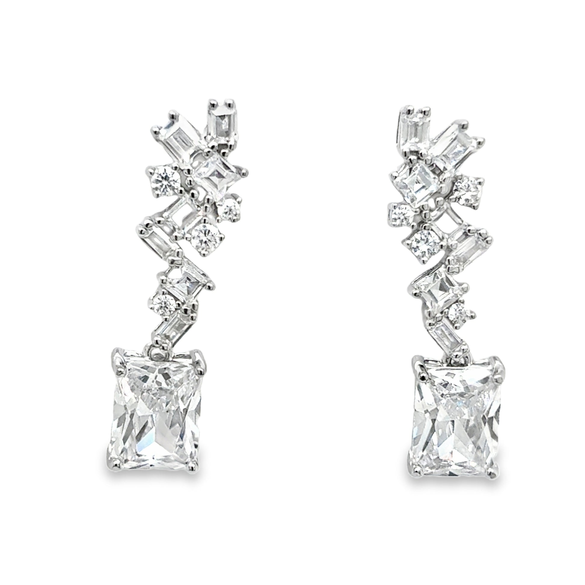 Sterling Silver Multi CZ Emerald Cut Drop Earrings