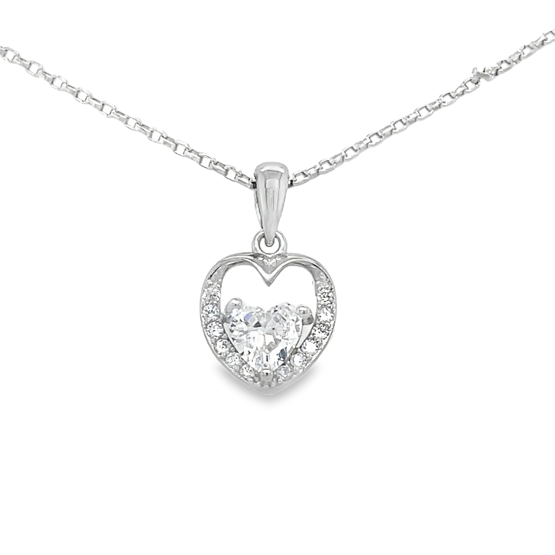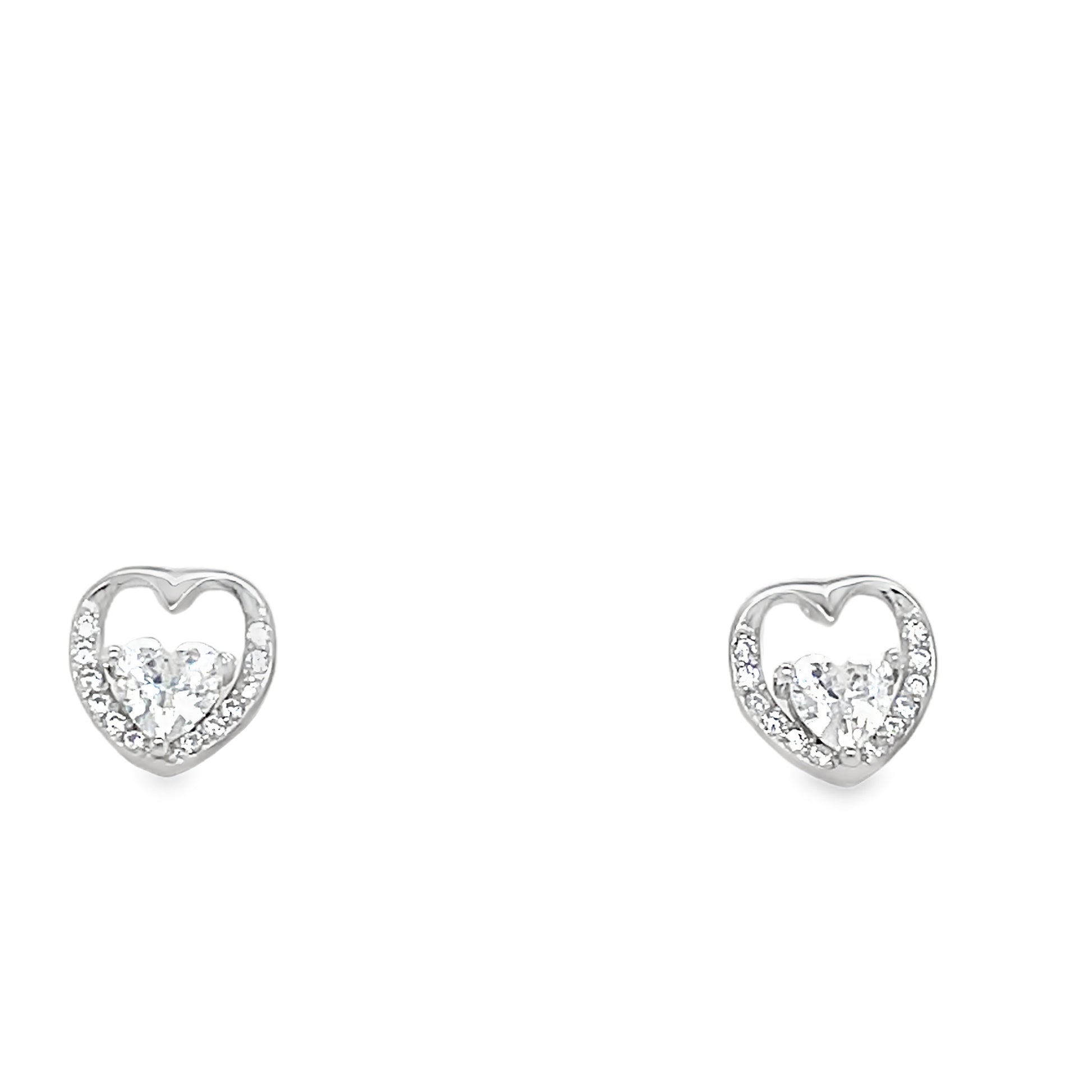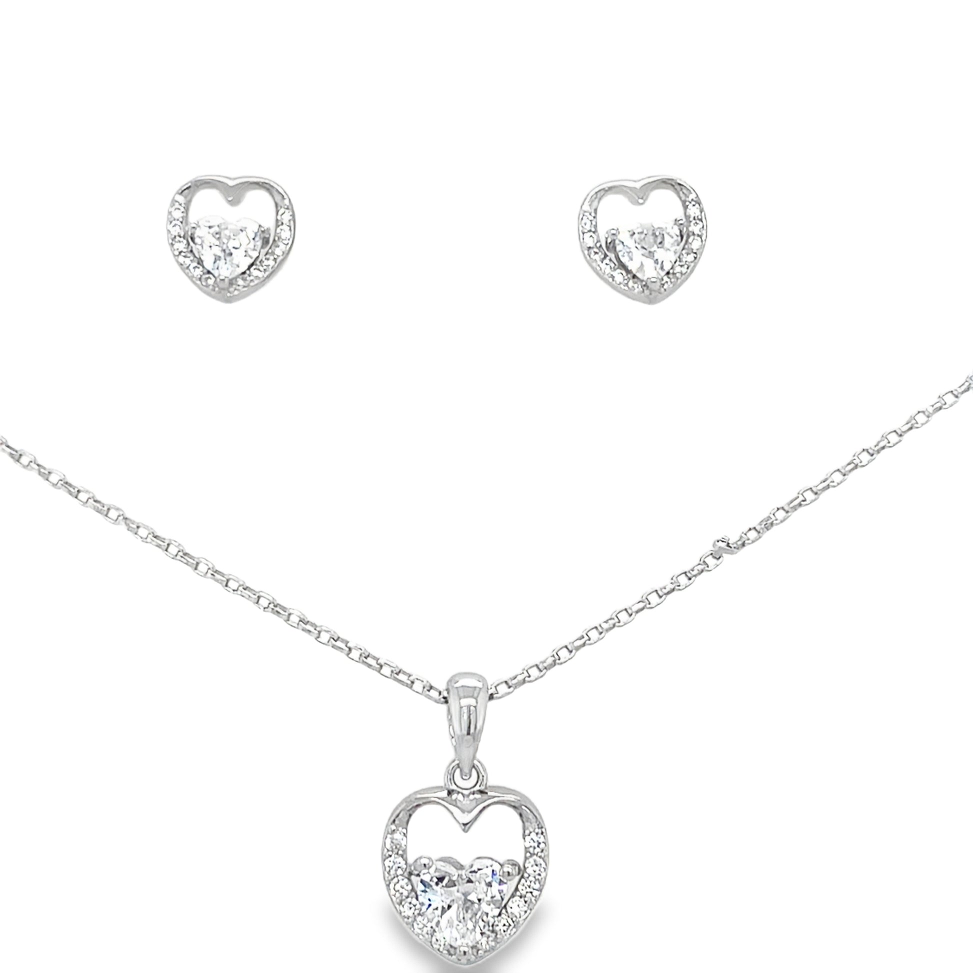 Sterling Silver Open CZ Heart Pendant and Earring Set