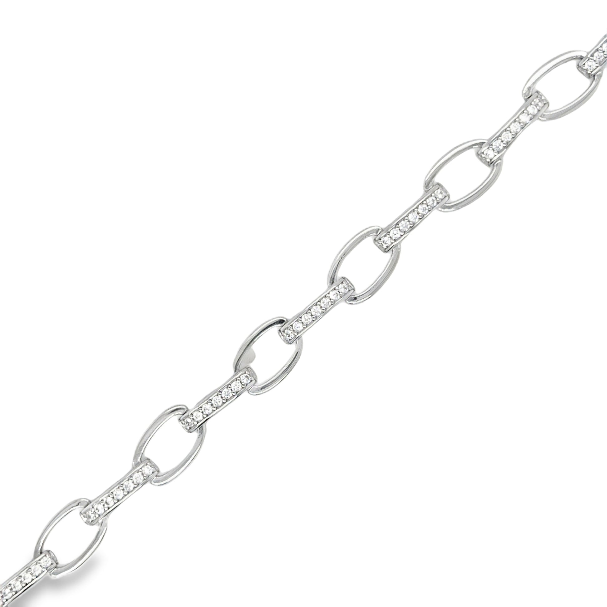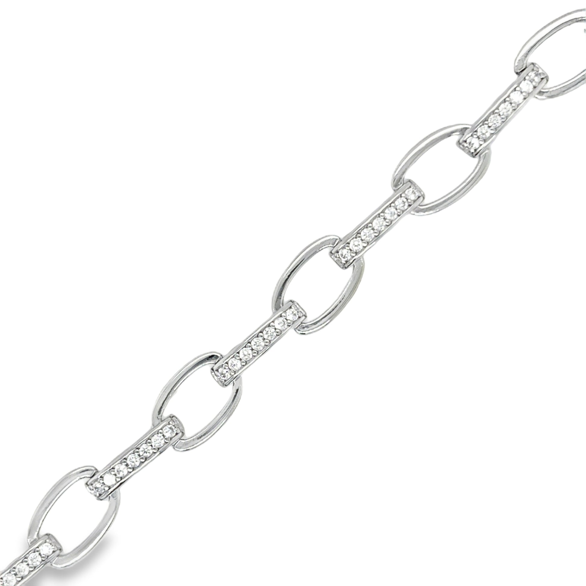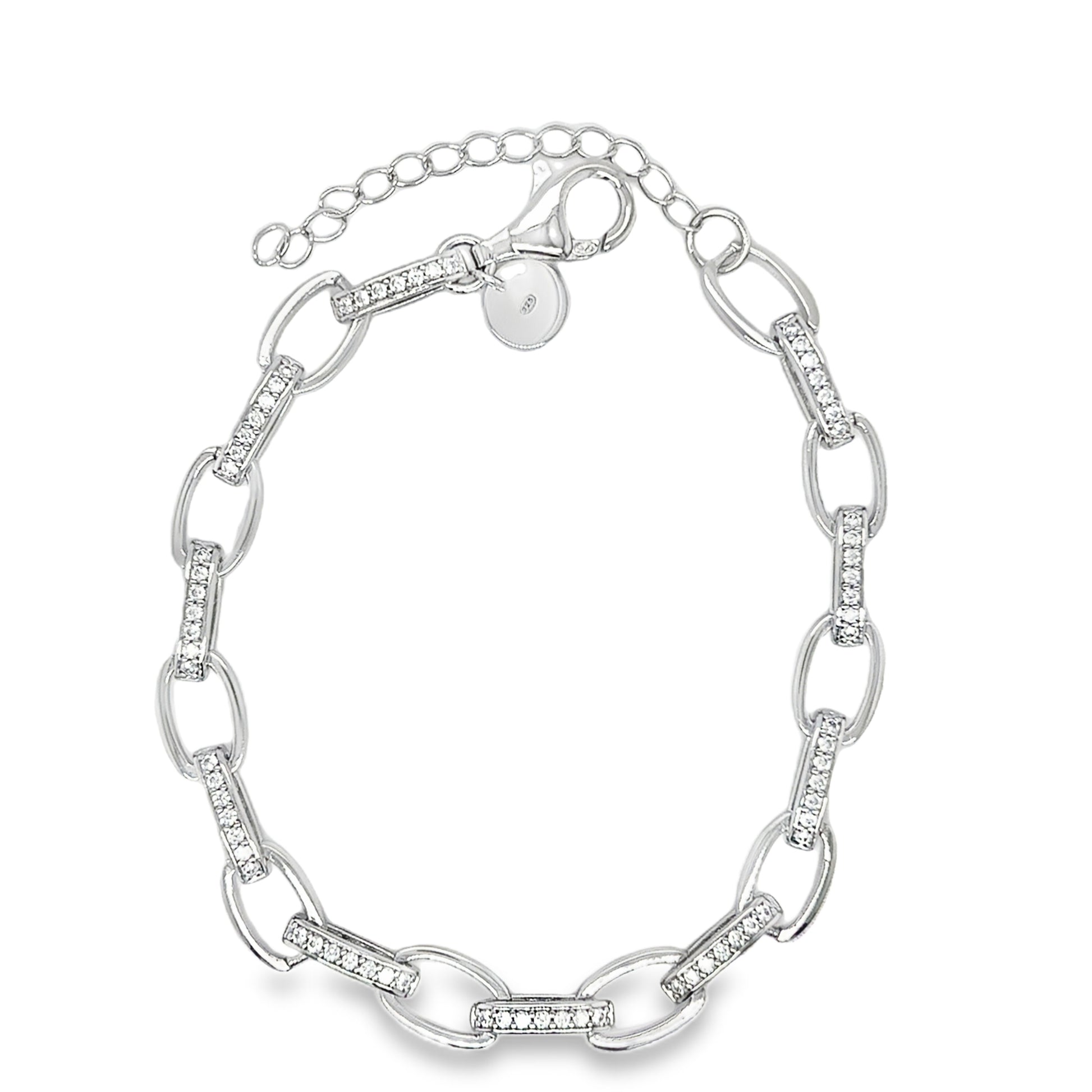 Sterling Silver Open Oval and CZ Bar Link Bracelet