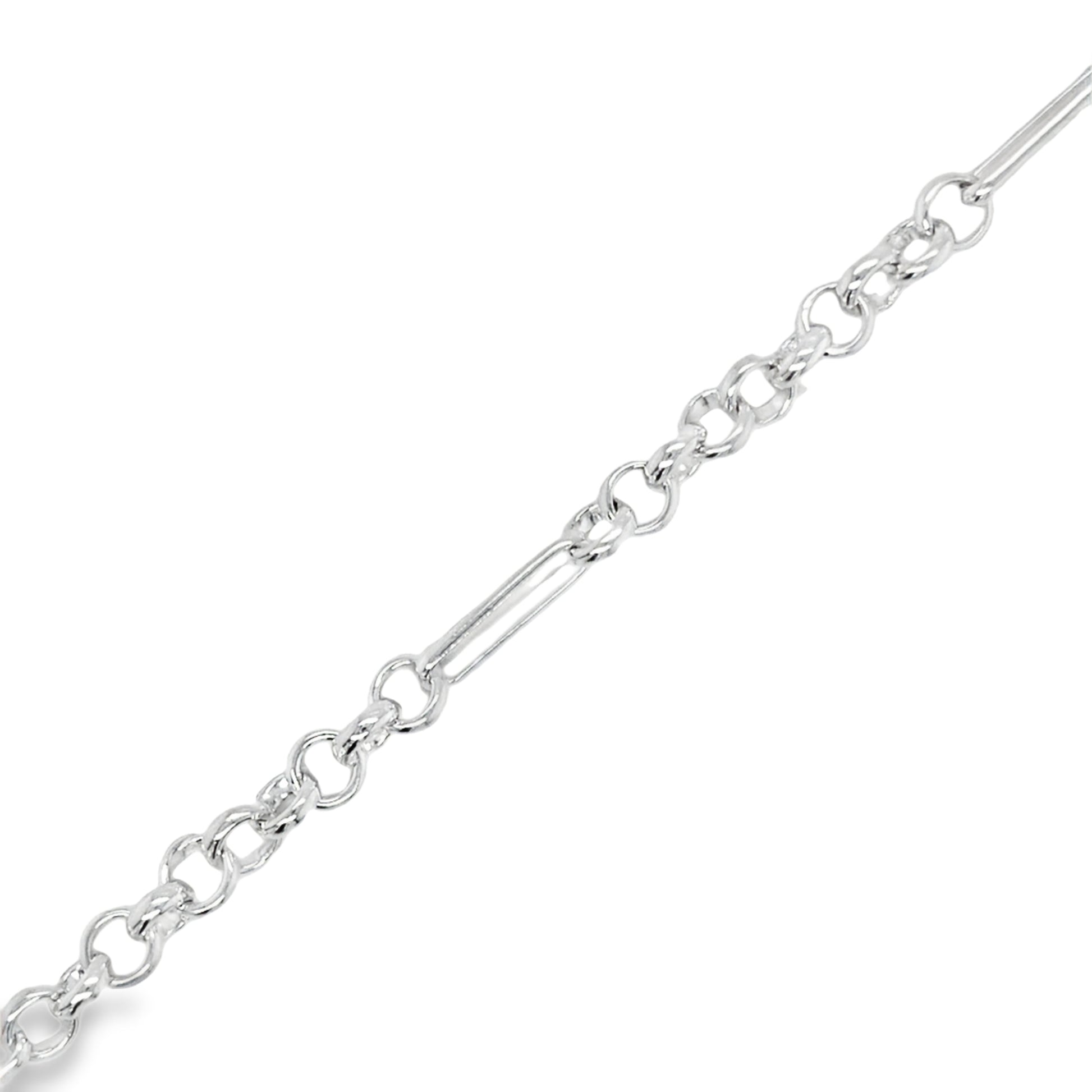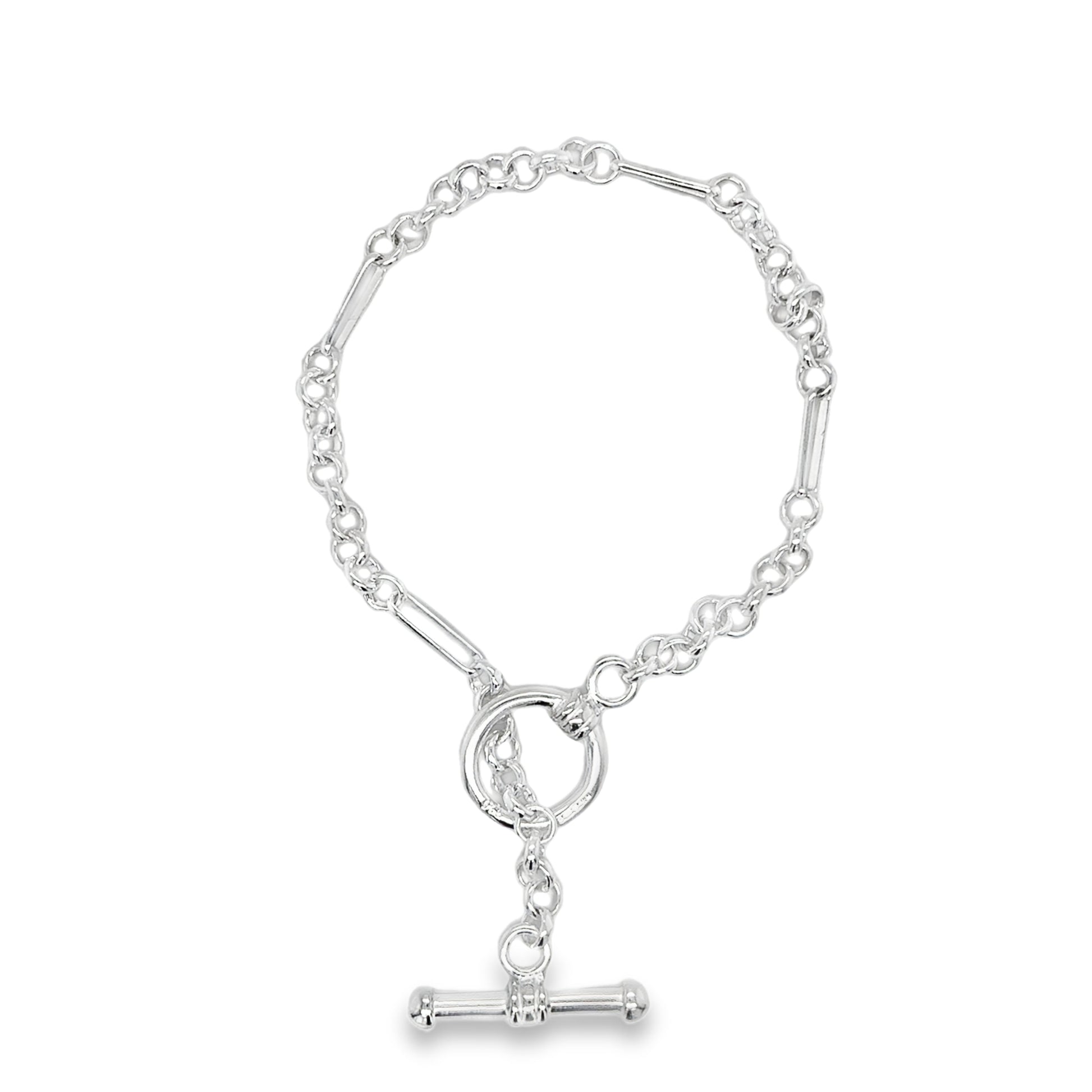 Sterling Silver Oval and Belcher Link T-Bar Bracelet 7.5"