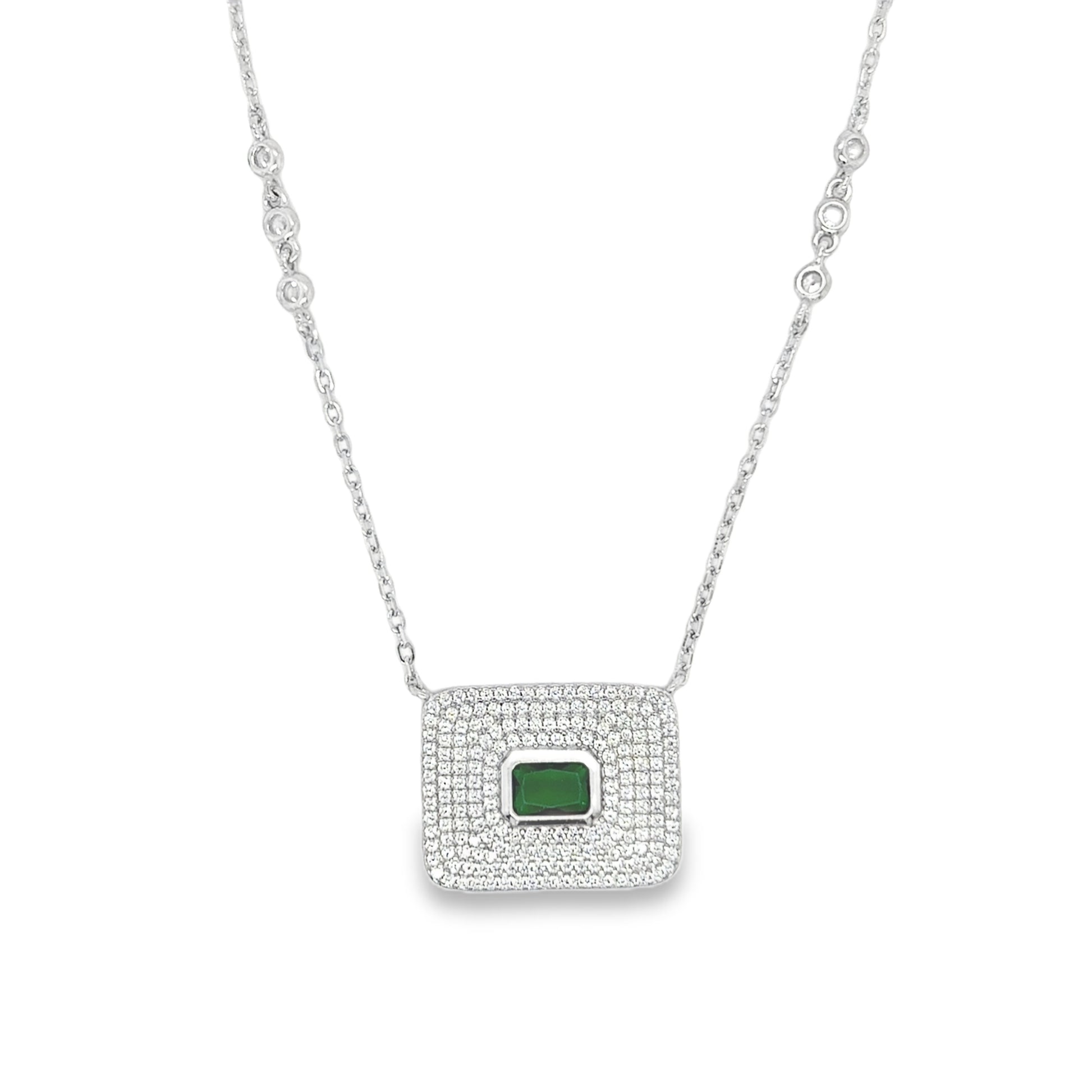 Sterling Silver Pave CZ Rectangular Pendant with Green CZ Centre