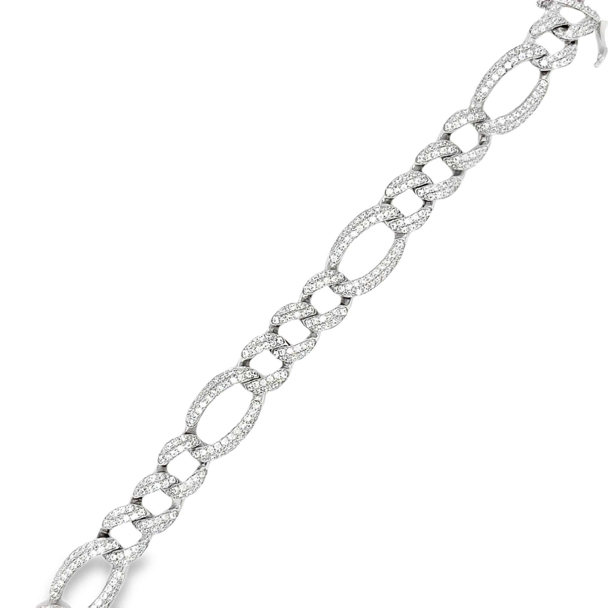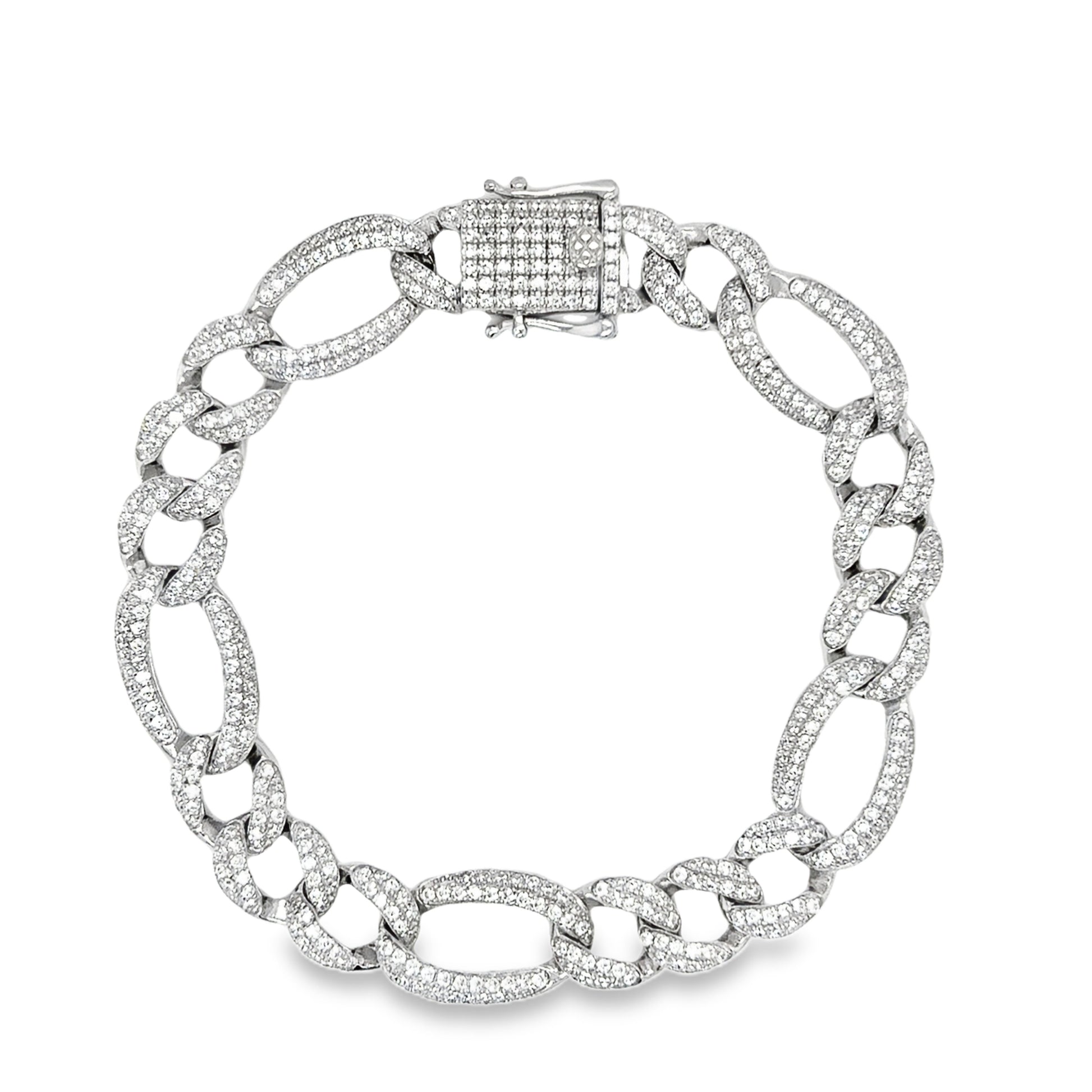 Sterling Silver Pave CZ XL Figaro Bracelet