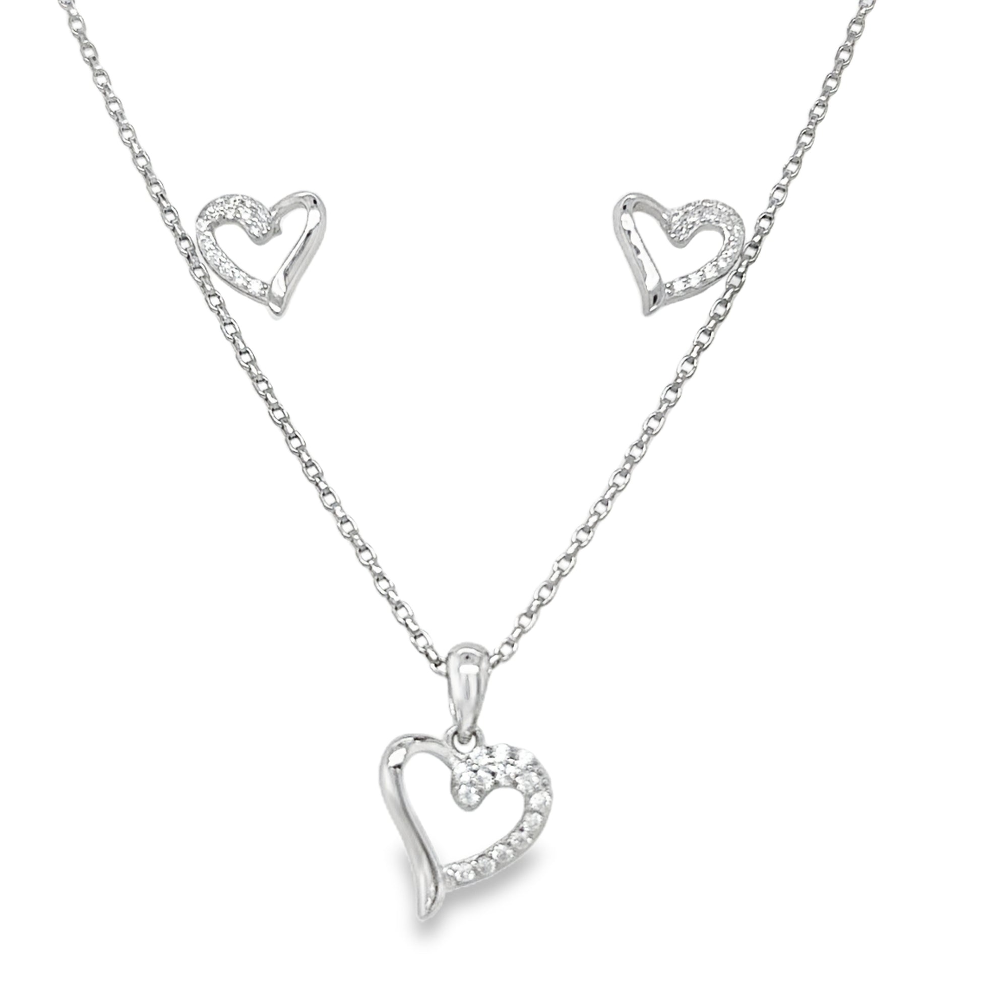 Sterling Silver Polished and CZ Open Heart Pendant and Earring Set