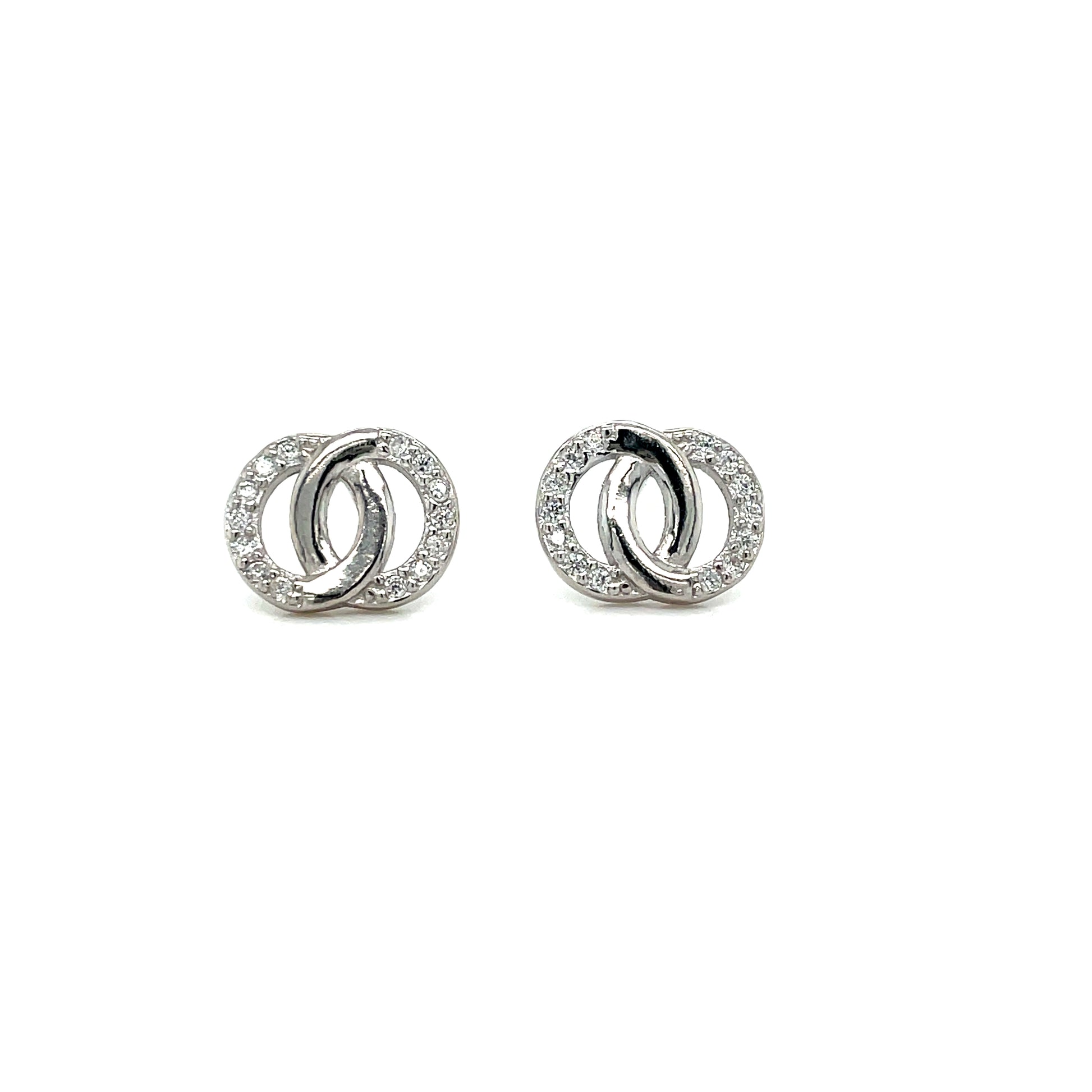 Sterling Silver Polished and Open Double CZ Stud Earrings