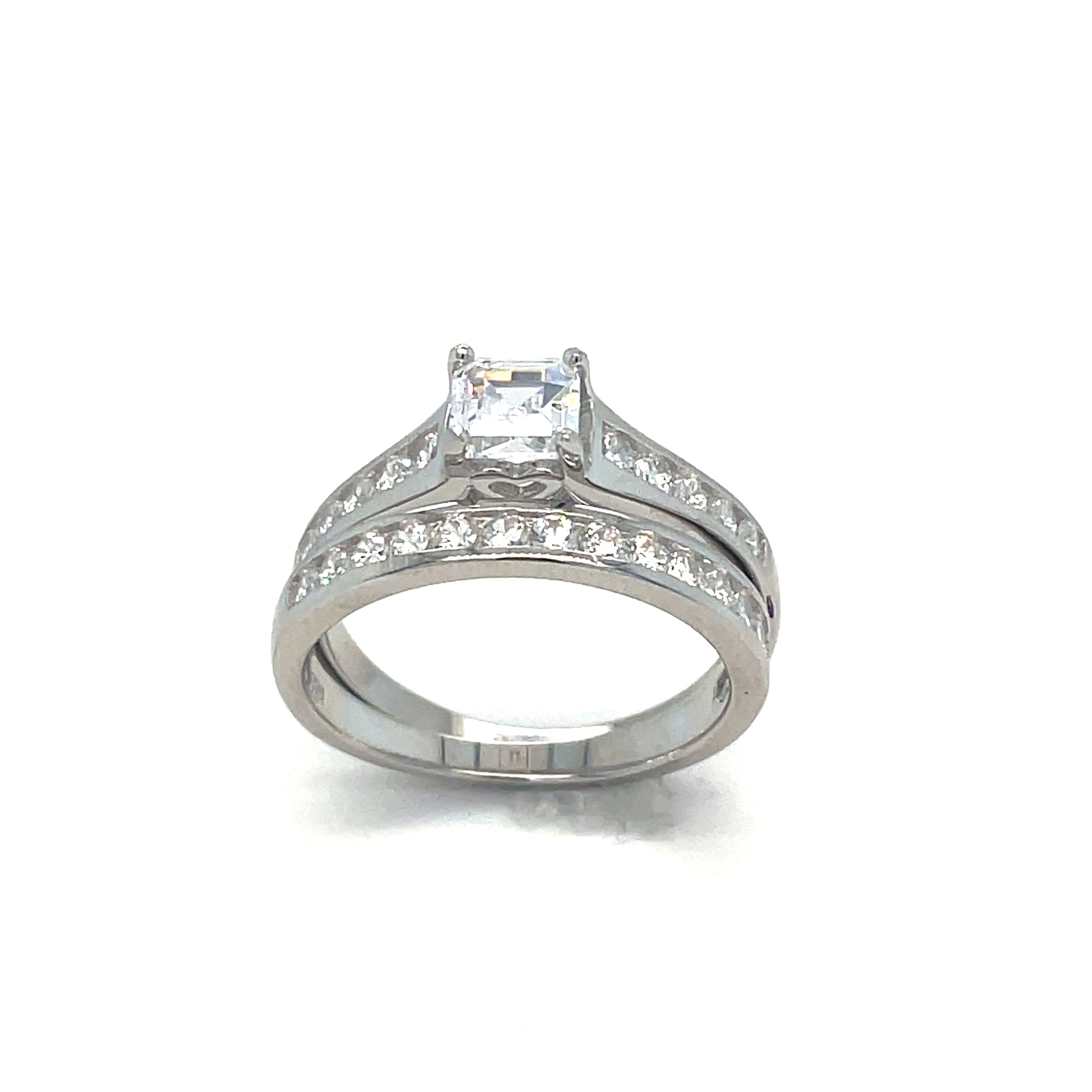 Sterling Silver Ring Set Square Cubic Zirconia with Cubic Zirconia Shoulders + matching Cubic Zircon