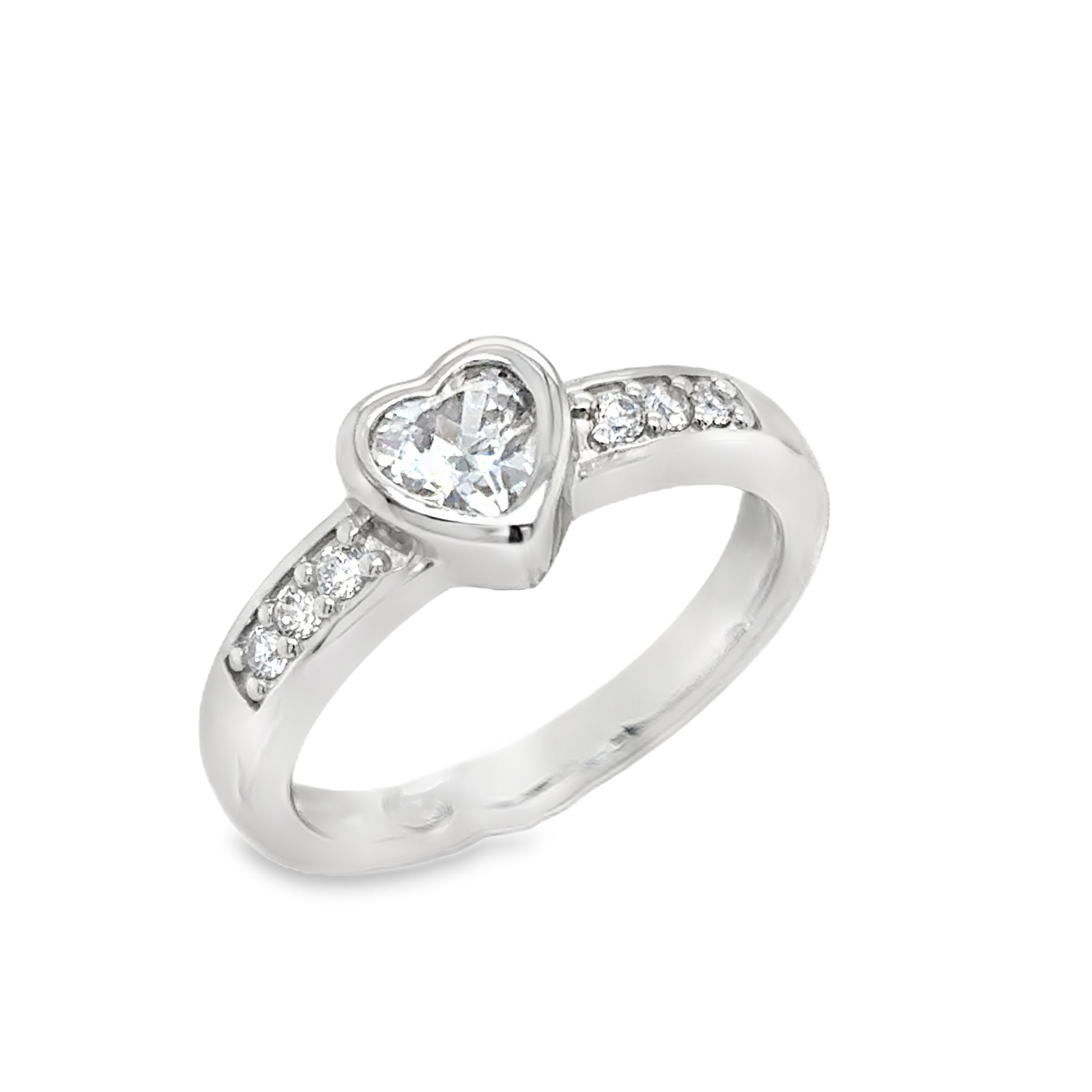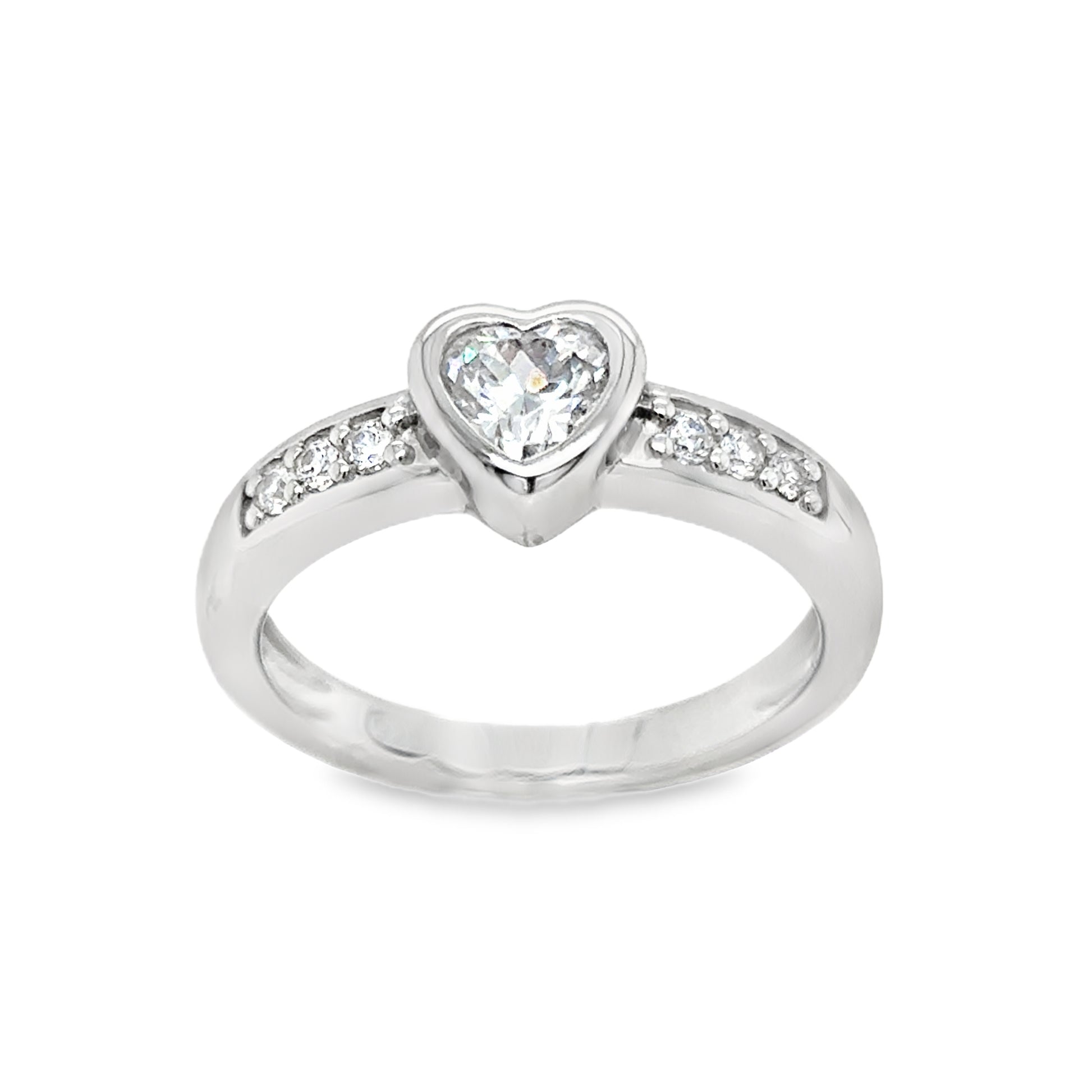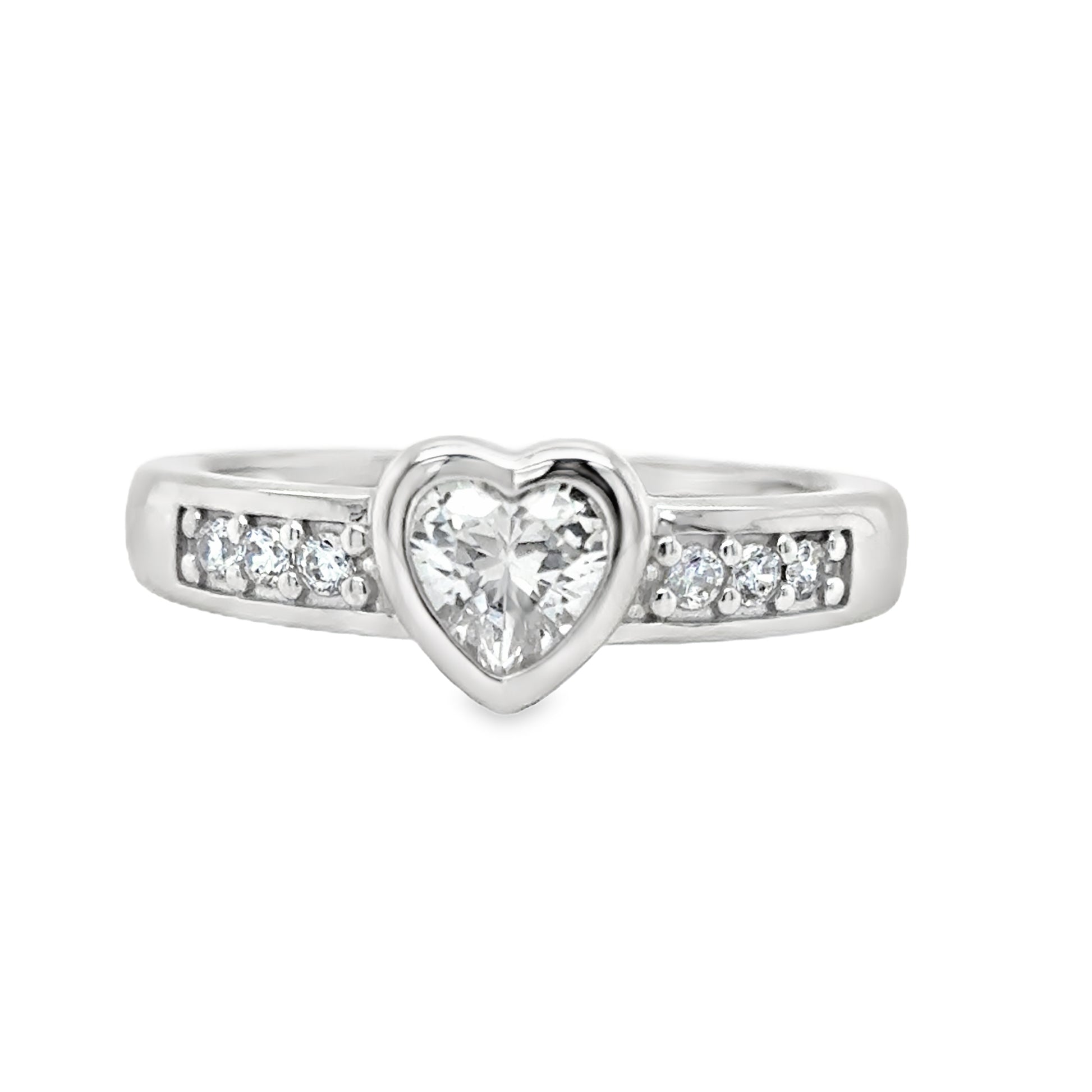 Sterling Silver Rubover Heart CZ Ring with Channel Set CZ Shoulders