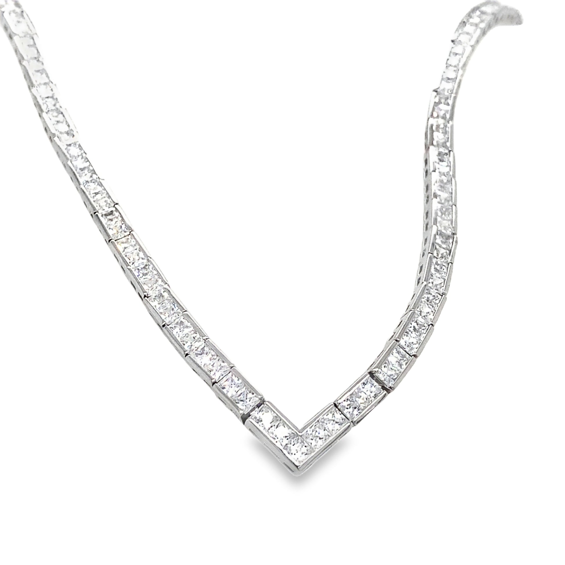 Sterling Silver V Shape Channel Set Tennis Necklet